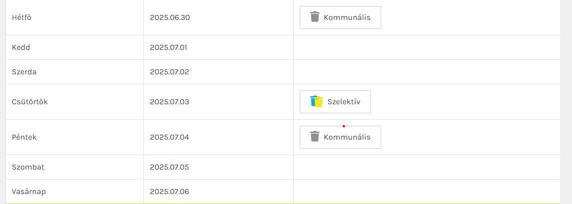 A Pagony utcában 2025 eleje óta rendszeresen elmarad a papírhulladék (kék kuka) elszállítása, hetente van beütemezve, de néha havonta csak egyszer viszik. Emiatt elkezdtük átpakolni a papírt a kommunálisba.