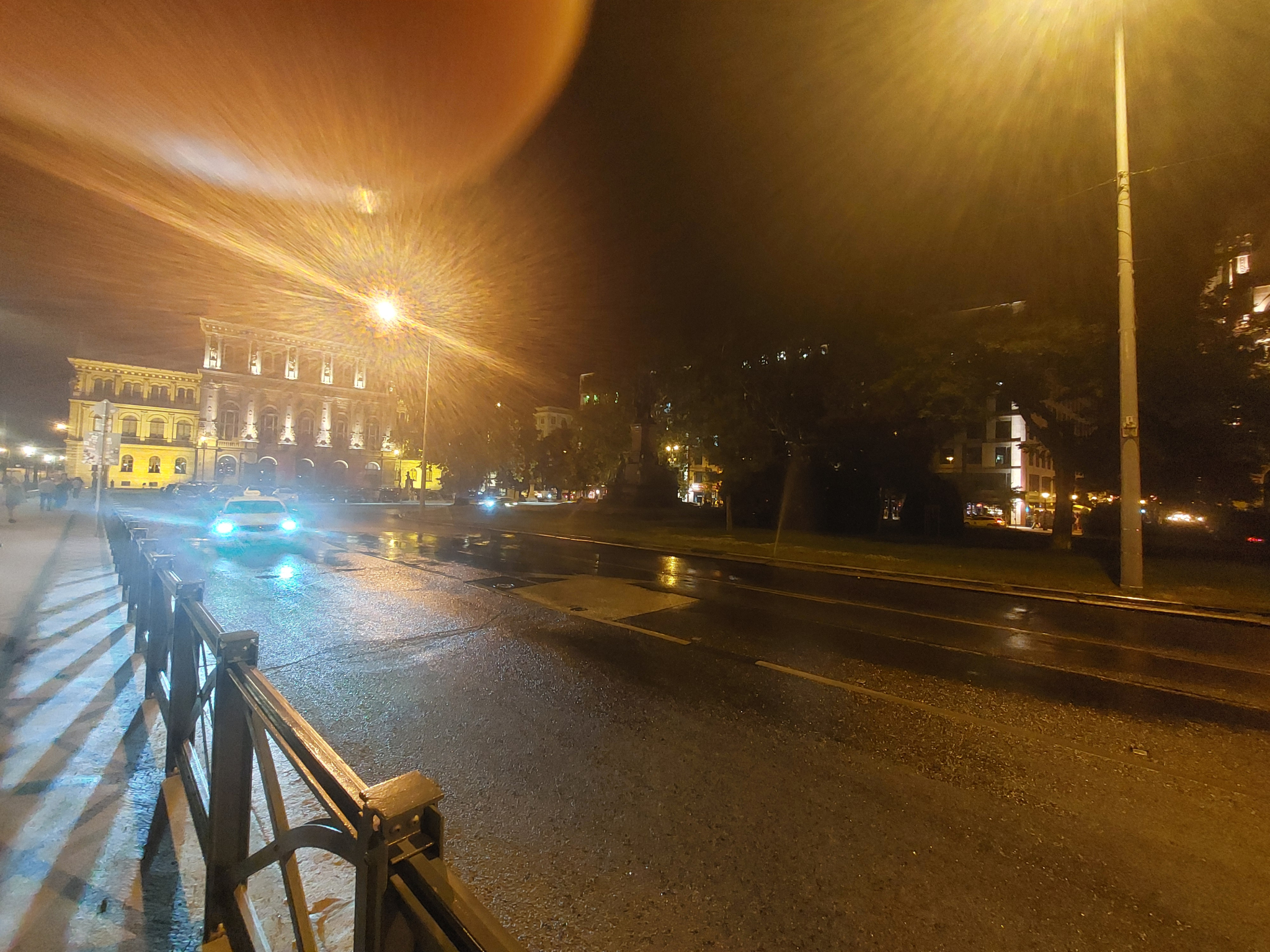 Az V. Roosevelt tér körforgalomban lévő park Lánchíd felőli oldalán az összes szórófej az útetstet öntözi 2 sáv szélességben, a gyepet pedig nem. (Észlelés 2025.06.14. 22 óra körül)