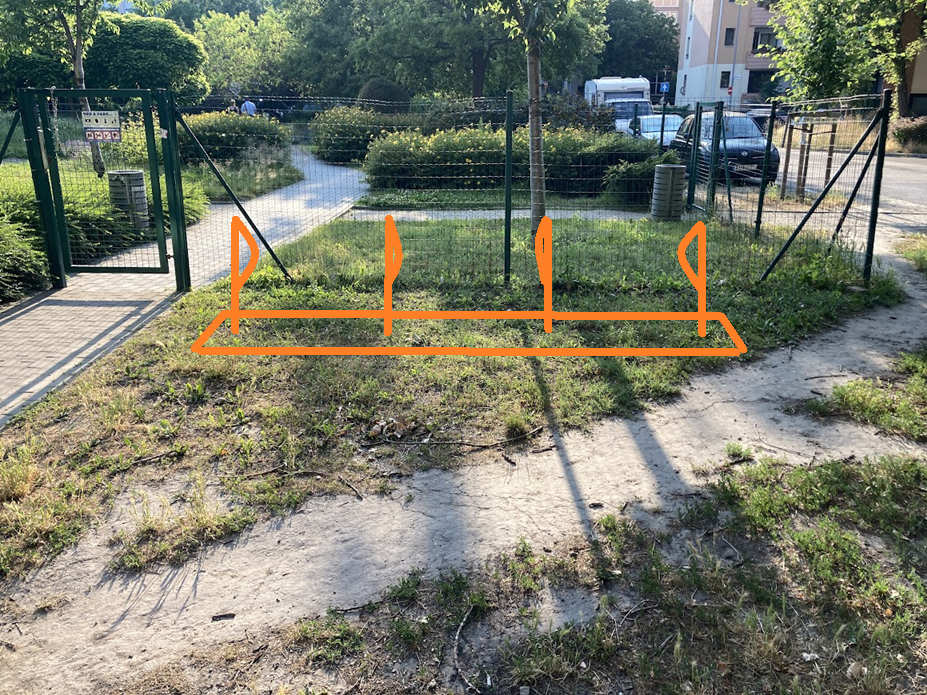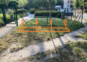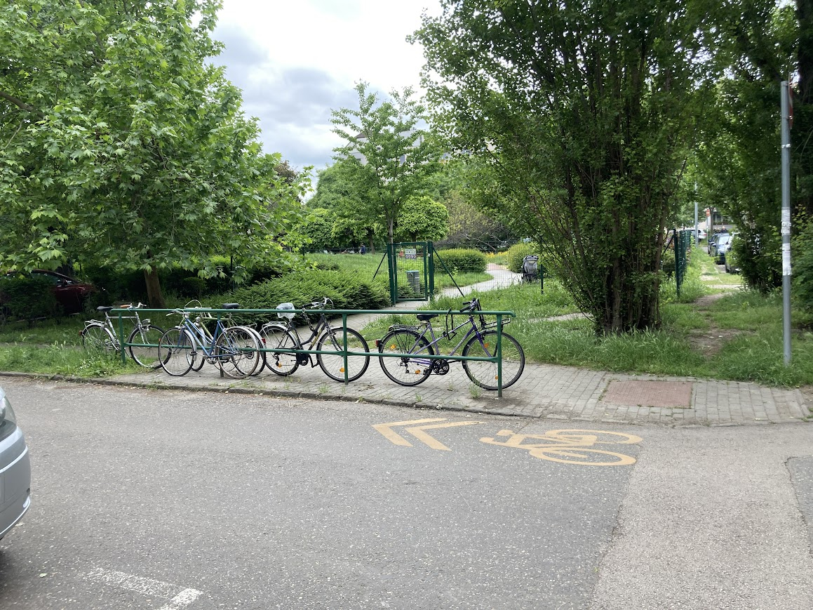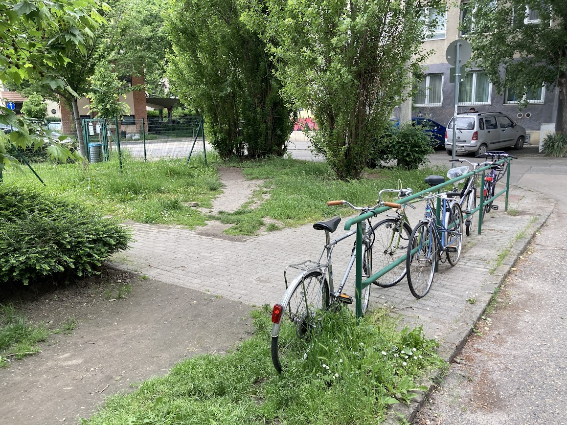 A XI. kerültben a Kanizsai - Bukarest utca sarkán, a Levendulás park mellett folyamatos probléma, hogy nem tudjuk hova kötni a bringáinkat.