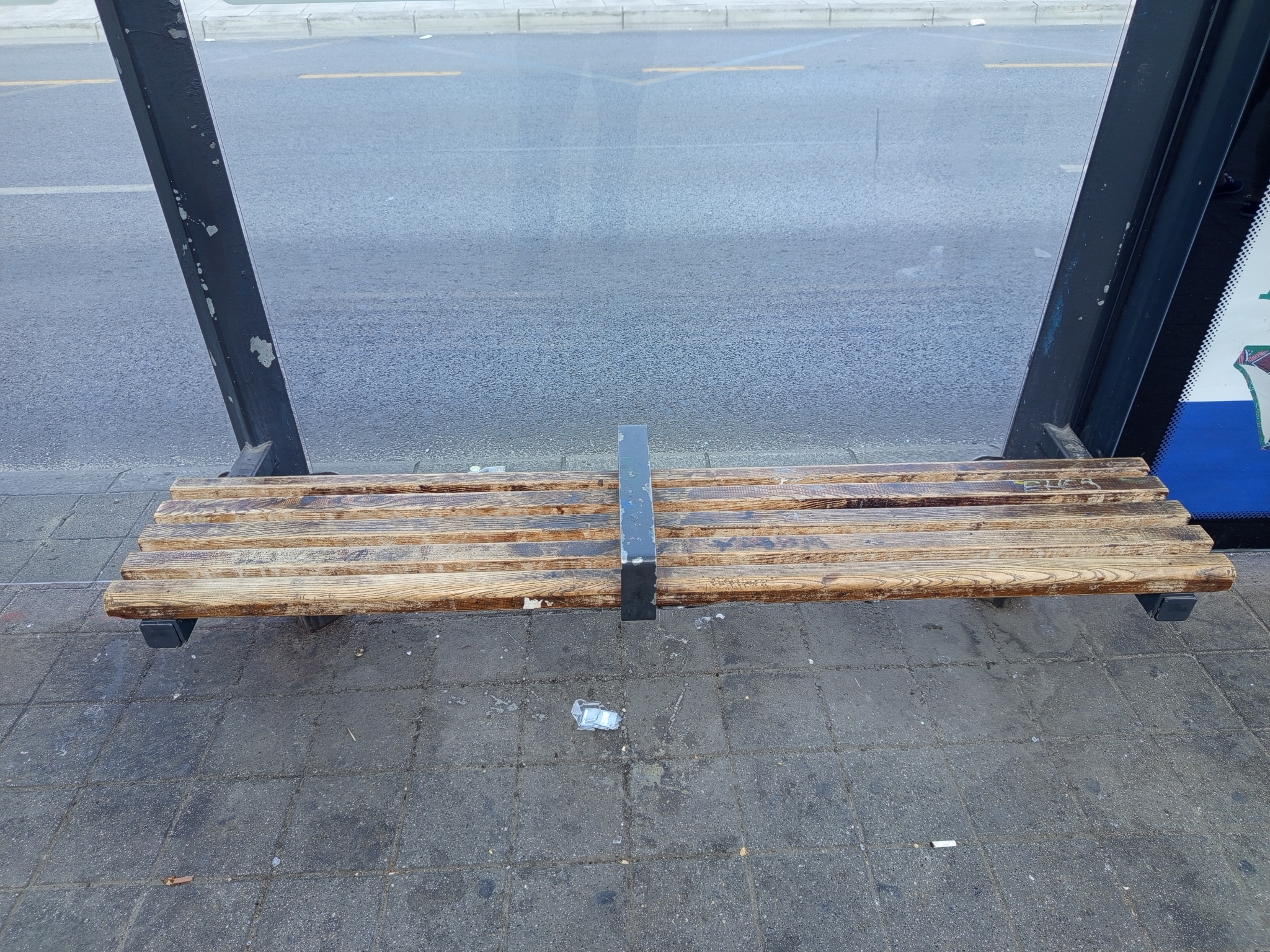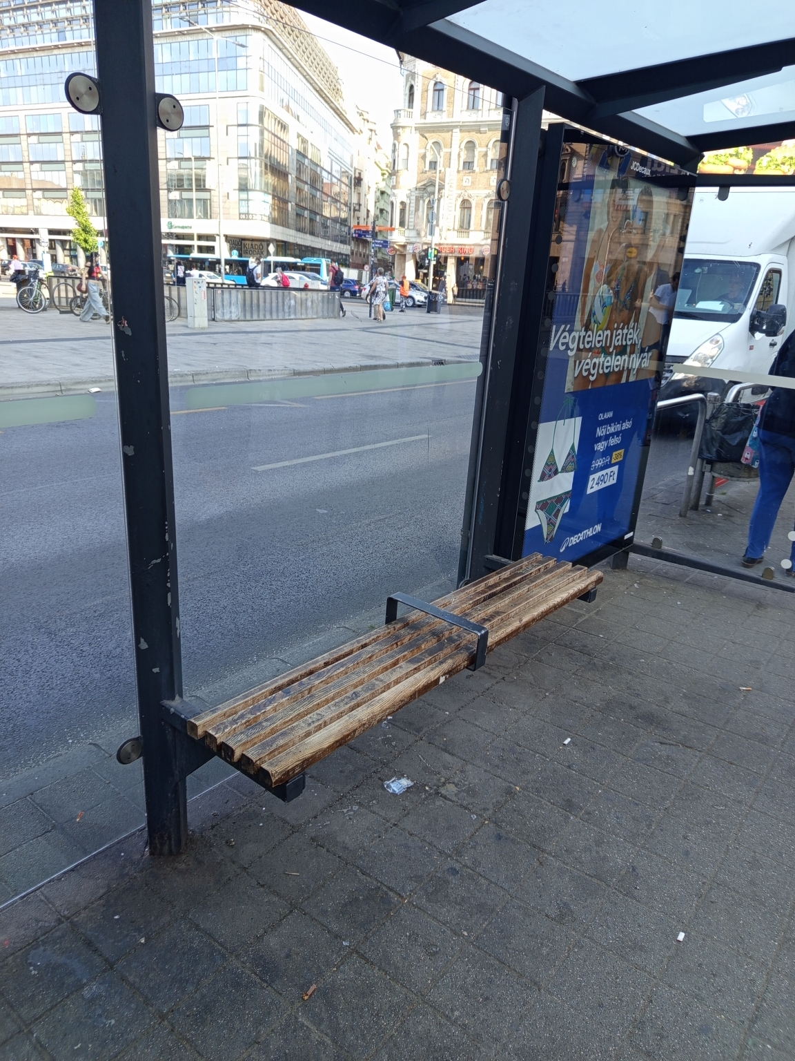 A Blaha Lujza téren még maradt egy darab nagyon megkopott pad a villamos megállóban! Megkérném az illetékest hogy gondoskodjon a cseréjéről! Előre is köszönöm!