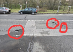 A Béla király út 42/B szám alatti ingatlan előtt az úttesten van egy mélyedés, melyben esőzéskor összegyűlik a sáros víz és mely pontosan az autók keréknyomába esik, amik felcsapják ezt a sáros vizet a bejárat homlokzati falára, ezzel folyamatosan összekoszolva azt. Mivel a felcsapódás pont a kaputelefon és a postaláda területére esik, ezért azokat is veszélyezteti.