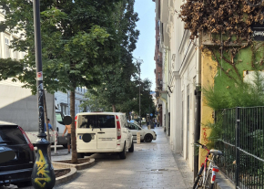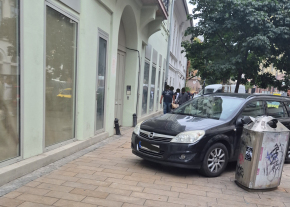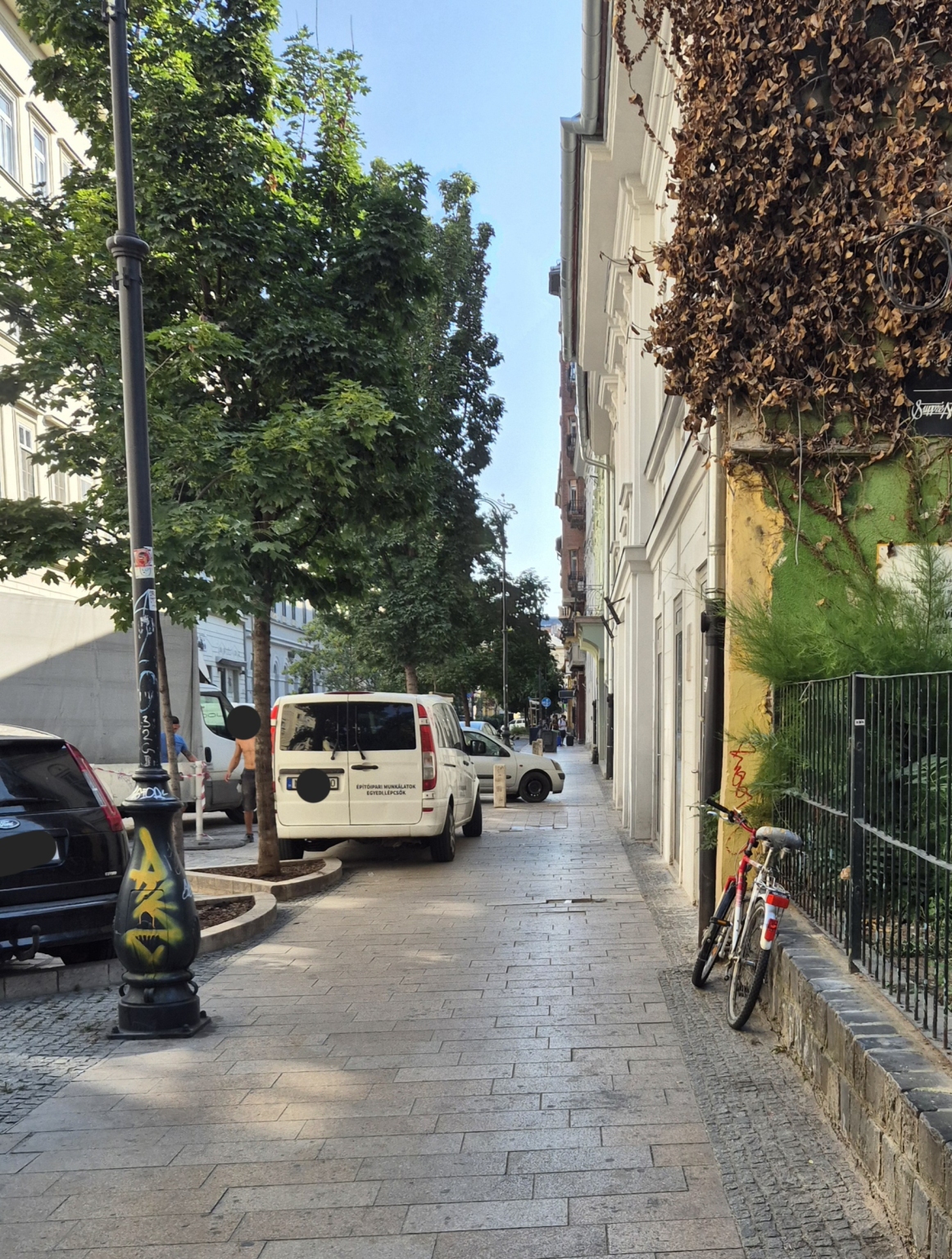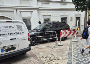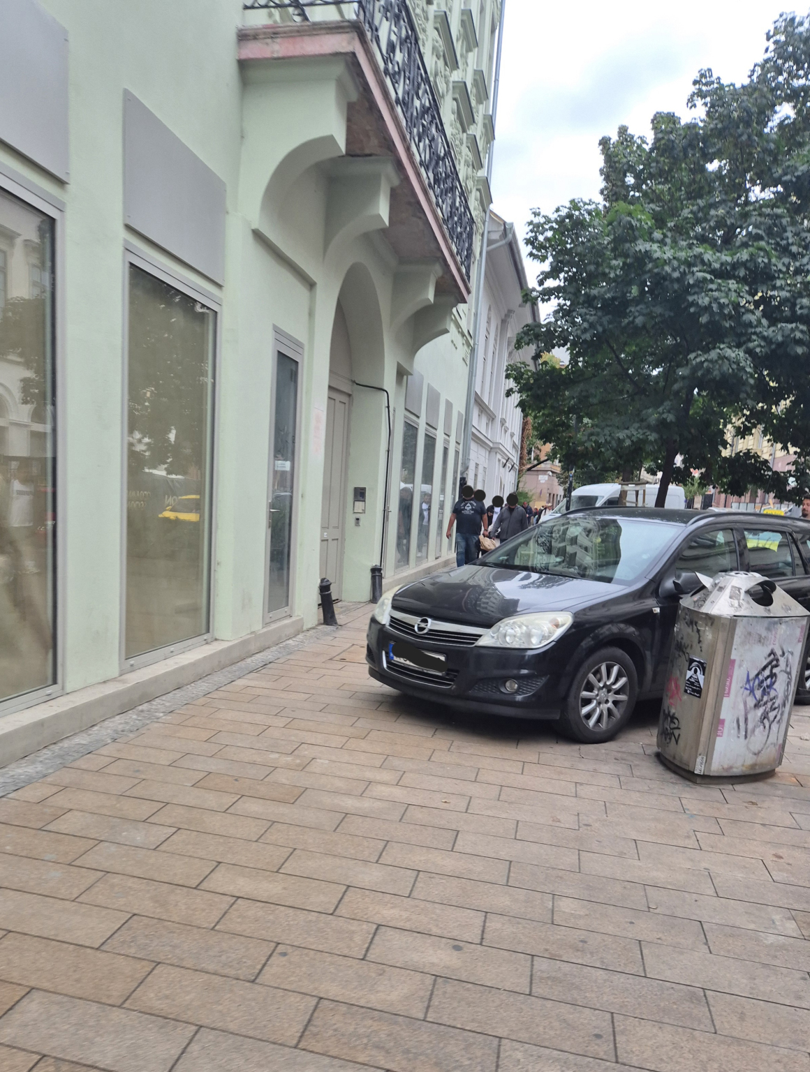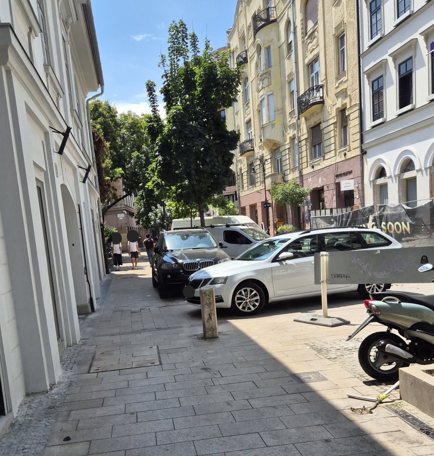 Amióta a szemben lévő épület felújítása zajlik, azóta ez a járda rendszeresen parkolónak van használva.