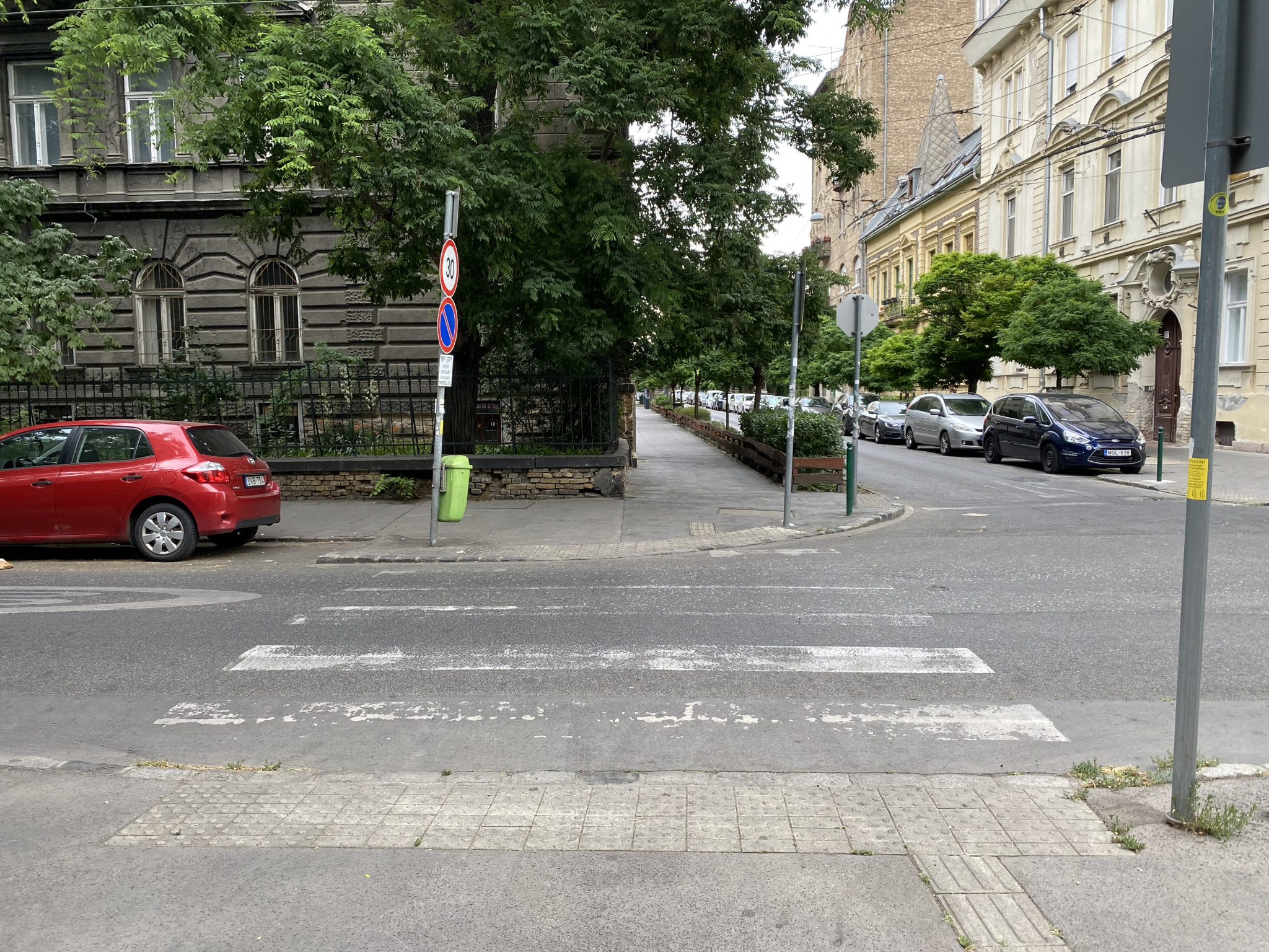 A Szondi utca-Munkácsy Mihály utca sarkán lekopott mind a két zebra. A közeli óvodák, iskolák miatt különösen fontos lenne ezek kijavítása.