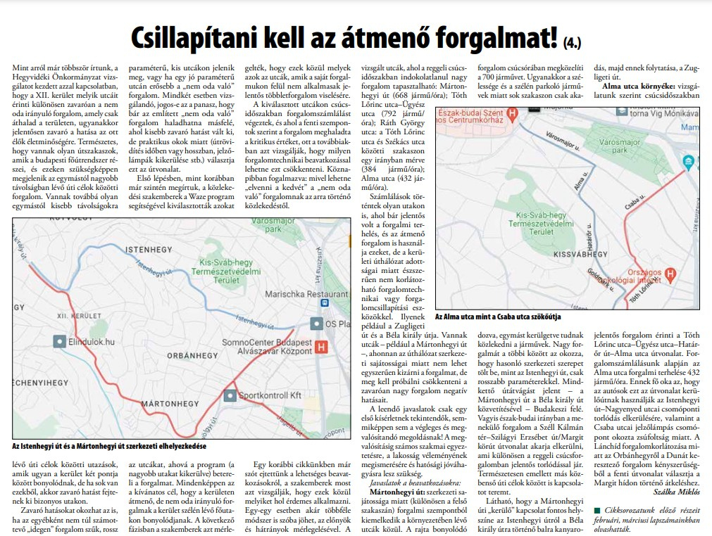 Szeretném elérni, hogy az egyirányú utcák és a forgalom lassításával a Kissvábhegyen megszűnjön az átmenő forgalom.