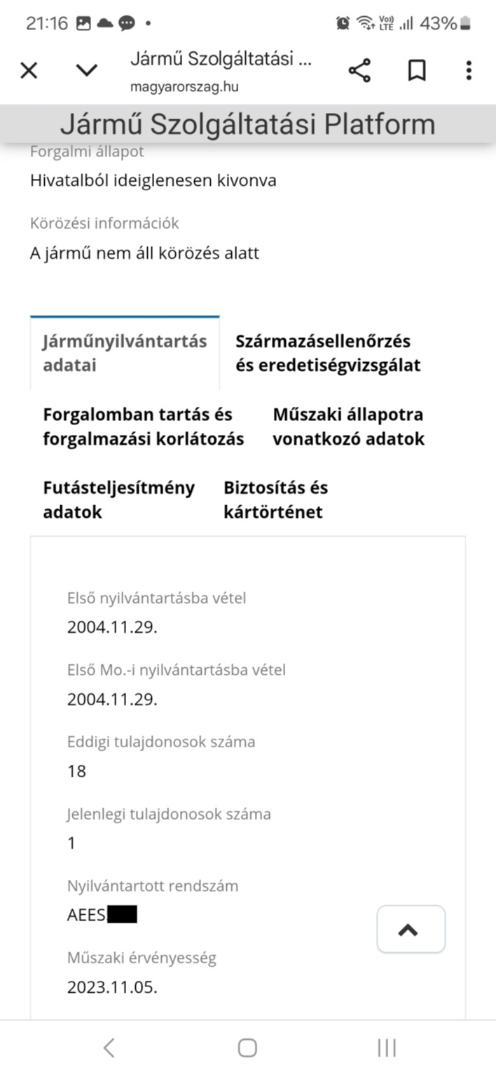 Forgalomból kivont, 1,5 éve lejárt műszakival
