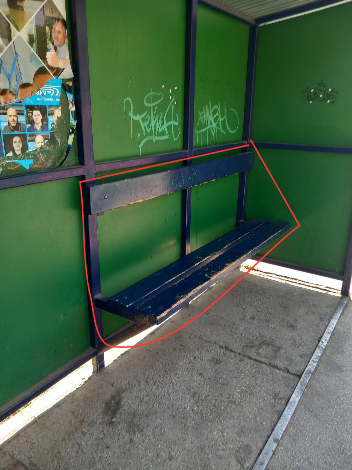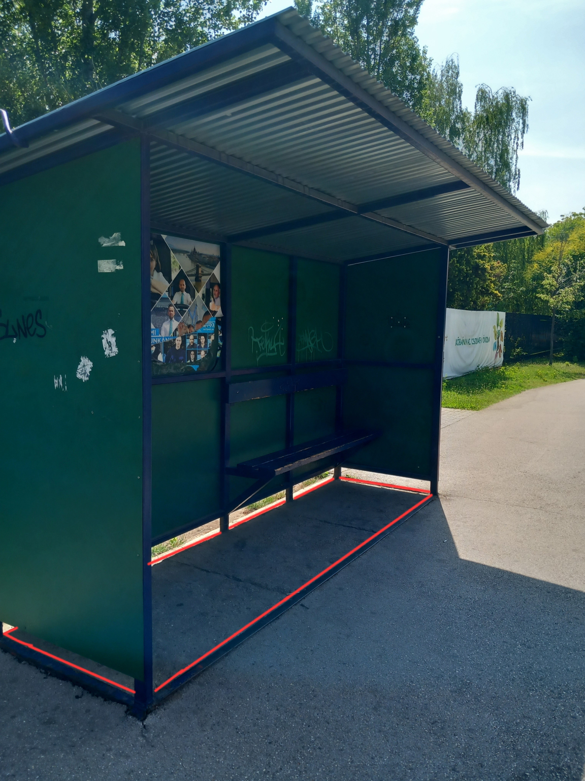 Az Újhegyi sétány buszmegállónál az utasváró lekopások láthatóak köztük rongálások észlelhető, illetve az utasvárónak a pad lassan lekopások és rongálás van ezen az utasvárón ami lassan le sem lehet űlni közte a beton részek nagy repedések láthatók