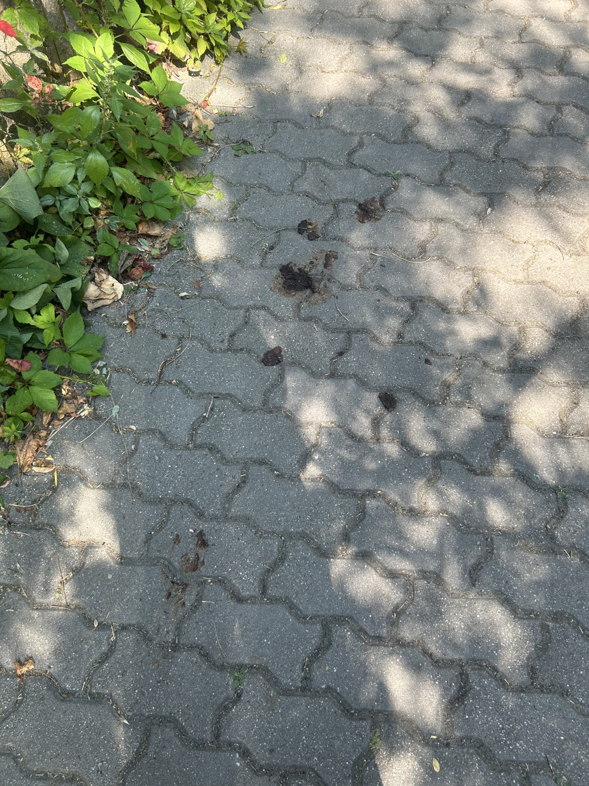 A Ráth György utca 38. előtti járdaszakaszon nagyobb mennyiségű, szétkenődött kutyaürülék található.