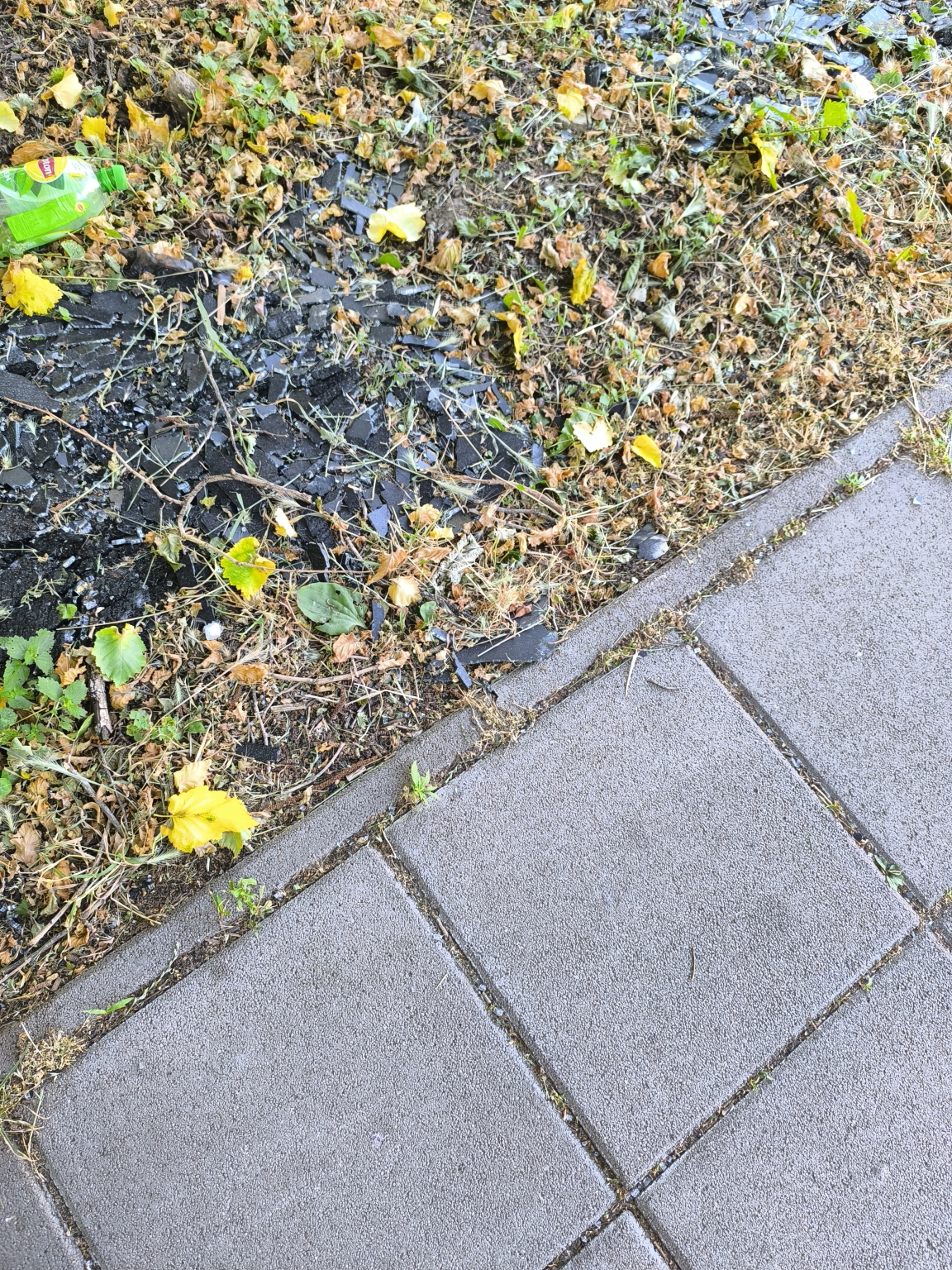 „Sajnos továbbra is megoldatlan a probléma, így az Önkormányzat tájékoztatása téves. A zöldfelületet továbbra is vastagon borítja az üvegtörmelék, amiből így folyamatosan visszakerül a járdára is a szennyezésből. Arra a kérném az Önkormányzatot, hogy legyen szíves körültekintőbben eljárni az ügyben, és ahogy a jelenlegi helyzet mutatja, ha a tisztítással megbízott vállalkozót szükséges, akkor ellenőrizni szíveskedjenek. Csatolom a jelenlegi állapotról készült képeket.”