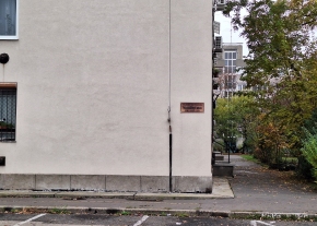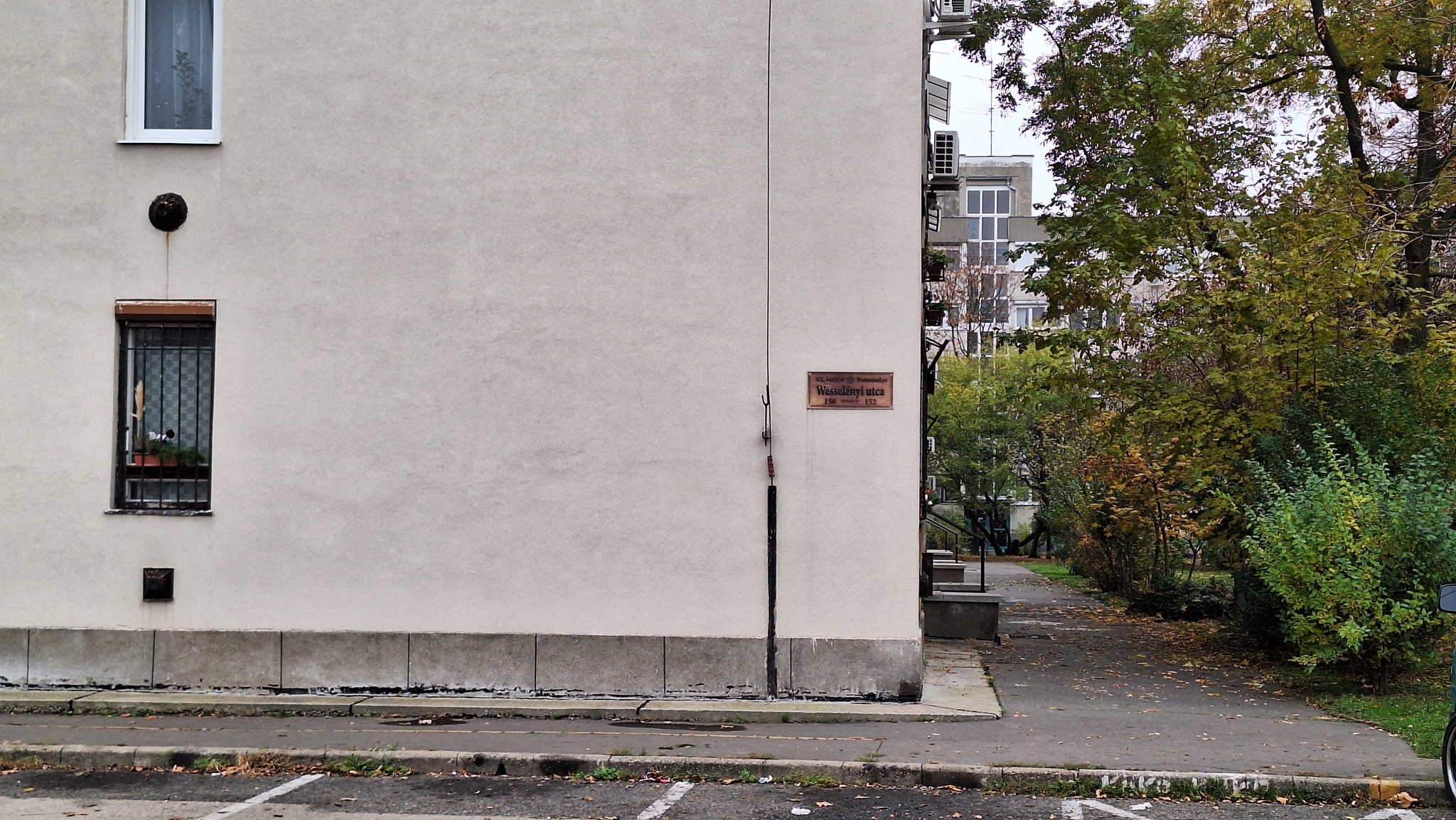 A Wesselényi utca 152-156. oldalán lévő utcanévtábla meg van barnulva.