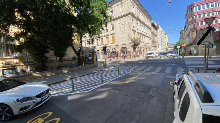 Először is köszönjük az átalakítást. Gyalogosként végre a felfestések miatt biztonságosabb lett átkelni. Kerékpárosként viszont a Szondiról a Rippl-Rónai utcára kanyarodva várhatóan gyakrabban kerülnénk összetűzésbe az autósokkal, mert feleslegesen beszűkült az út. Nem lehetne a felfestésben jelölt módon egy íves kerékpáros kanyarodó sávot csinálni?