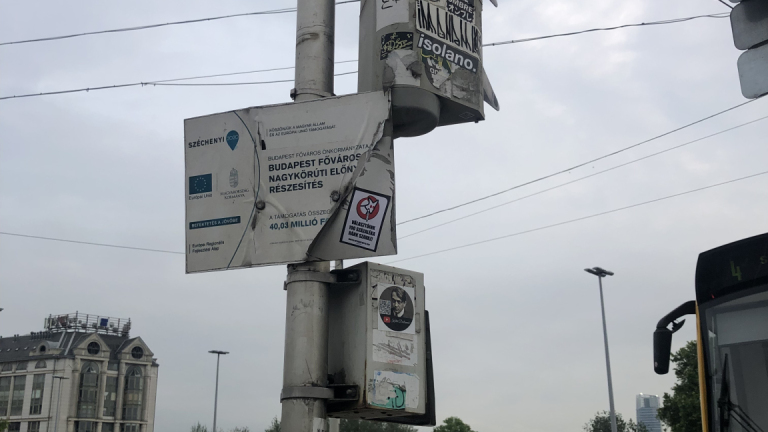 A Boráros téri villamosmegállóban sérült szennyezett az EU támogatást jelző tábla. Kérem, cseréljék ki!
