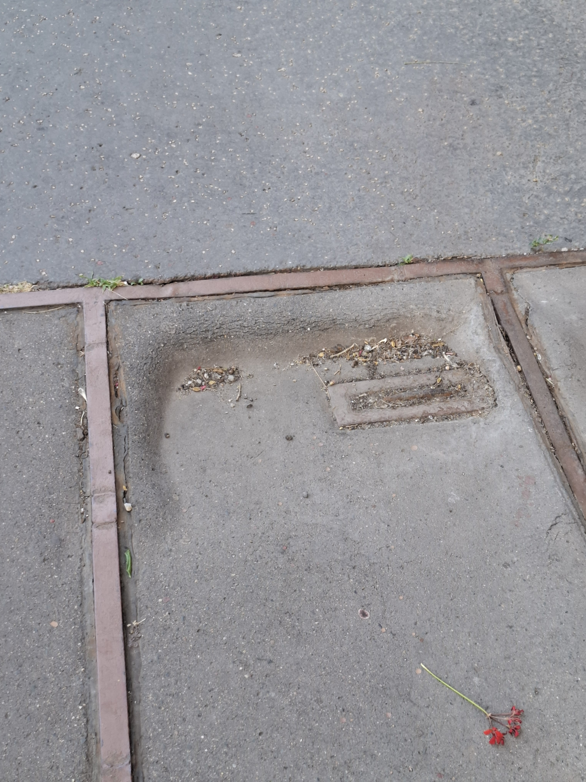 A Répássy Mihály utca 2 alatti pqnel háznál a közmű alépítménye megsüllyedt, balesetveszélyes.