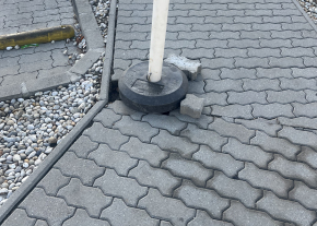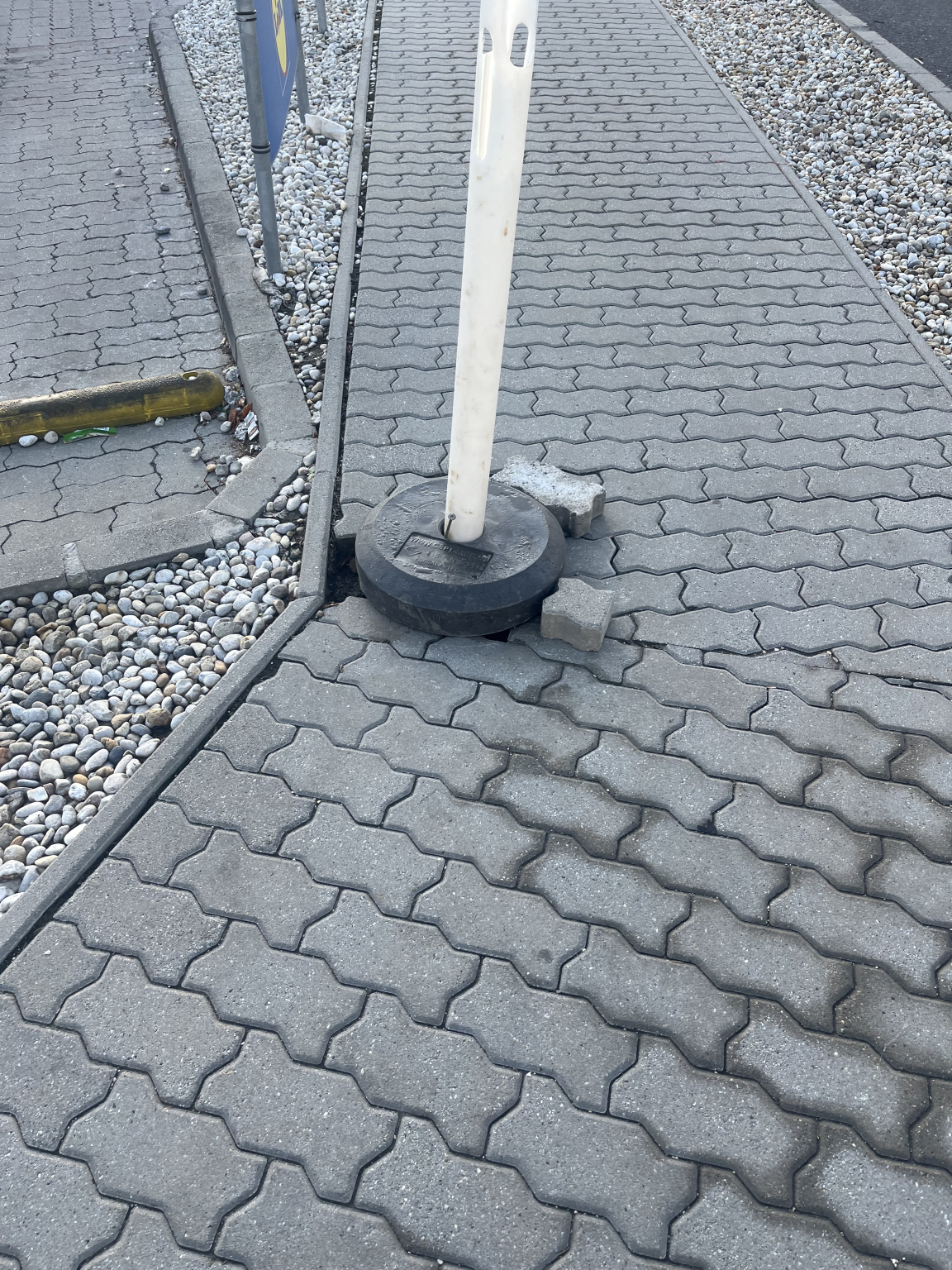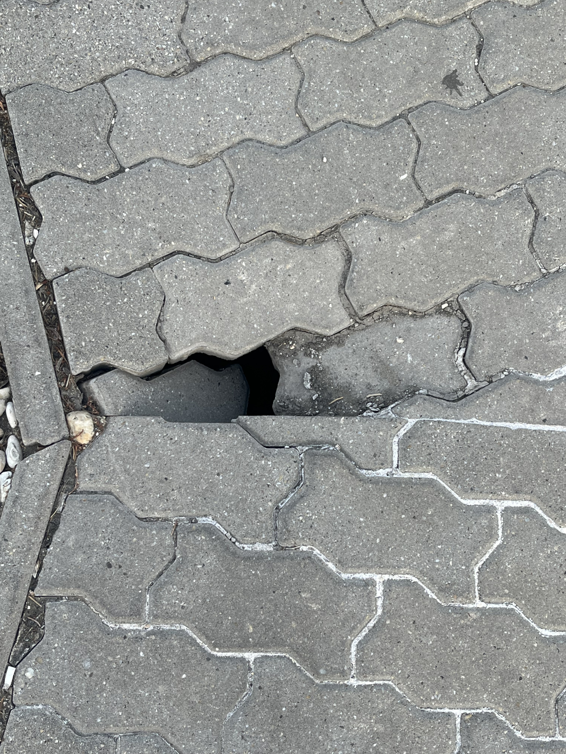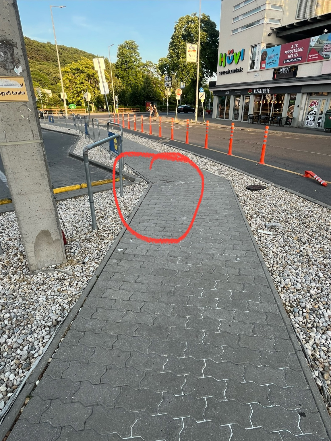 A Hüvi Lidl mellett vezető kővel kirakott járda egyik darabja kilazult, ami alatt mély lyuk tátong. Félő hogy valaki alatt beomlik.