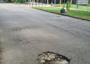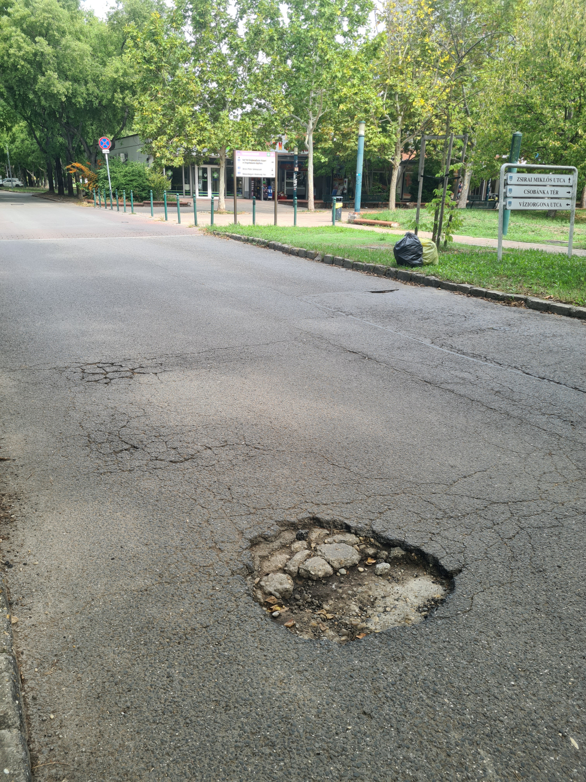 A Budapest 3. ker. Csobánka tér 1 .-nek jelölt út a Víziorgona utcai óvoda és a szakrendelő közötti úton akkora a kátyú, hogy a fekvő rendőrön átjőve észre se lehet venni, akkorát koppant az autó alváza, hogy szinte ijesztő.