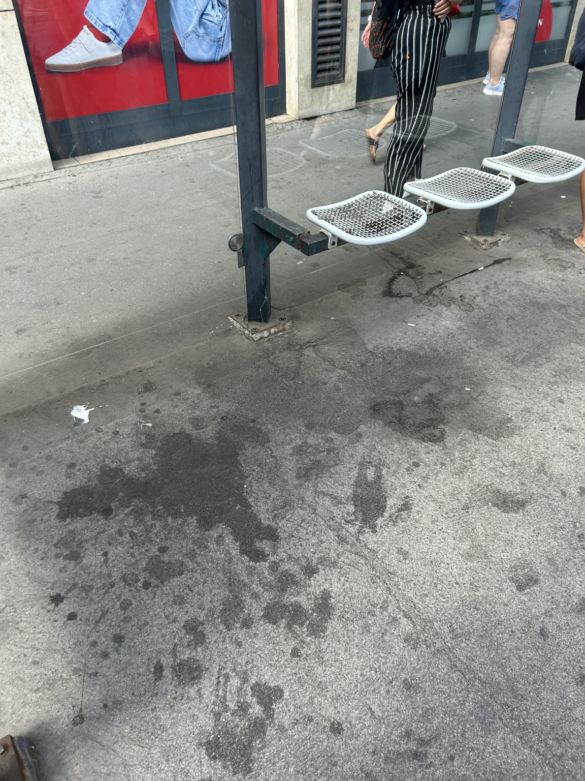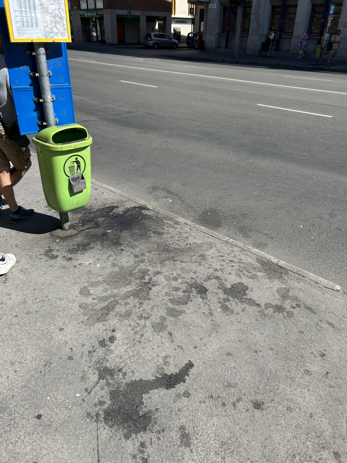 Újpest központban az Árpád úton a Rossmann előtti buszmegálló (196, 104 stb) nagyon koszos. A burkolaton többféle ragacsos anyag található. Kérjük az illetékeseket mossák le a felületeket és gyakorítsák a takarítást amennyiben van rá lehetőségük. Köszönjük!