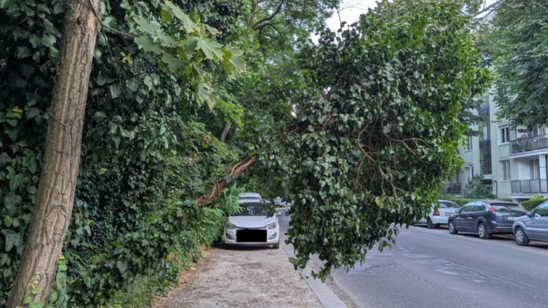 Parkolóra rádőlni készülő fa