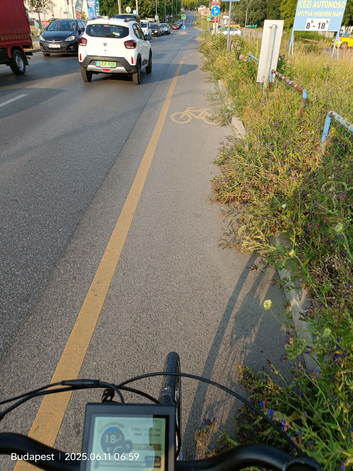 A növények oldalról nagyon ránőttek a kerékpársávra, kerülgetni kell, ami veszélyes.