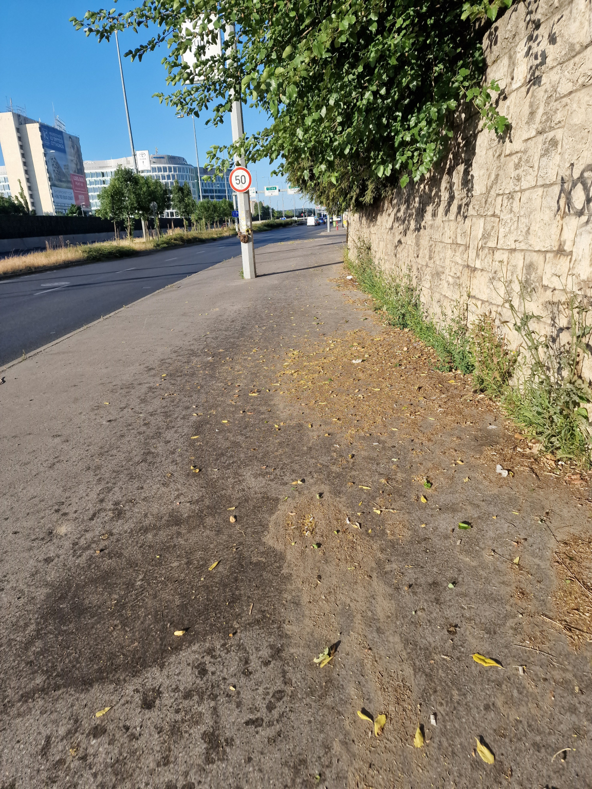 A Budaörsi út 107-119. előtti járda takarítását szeretném kérni. Valahol a járdára eső faeper és ringló szilva miatt van beszennyezve a járda, a többi helyen kutyák vizelete, vagy kifolyt üdítő, sör miatt vannak nagy foltok mindenhol.