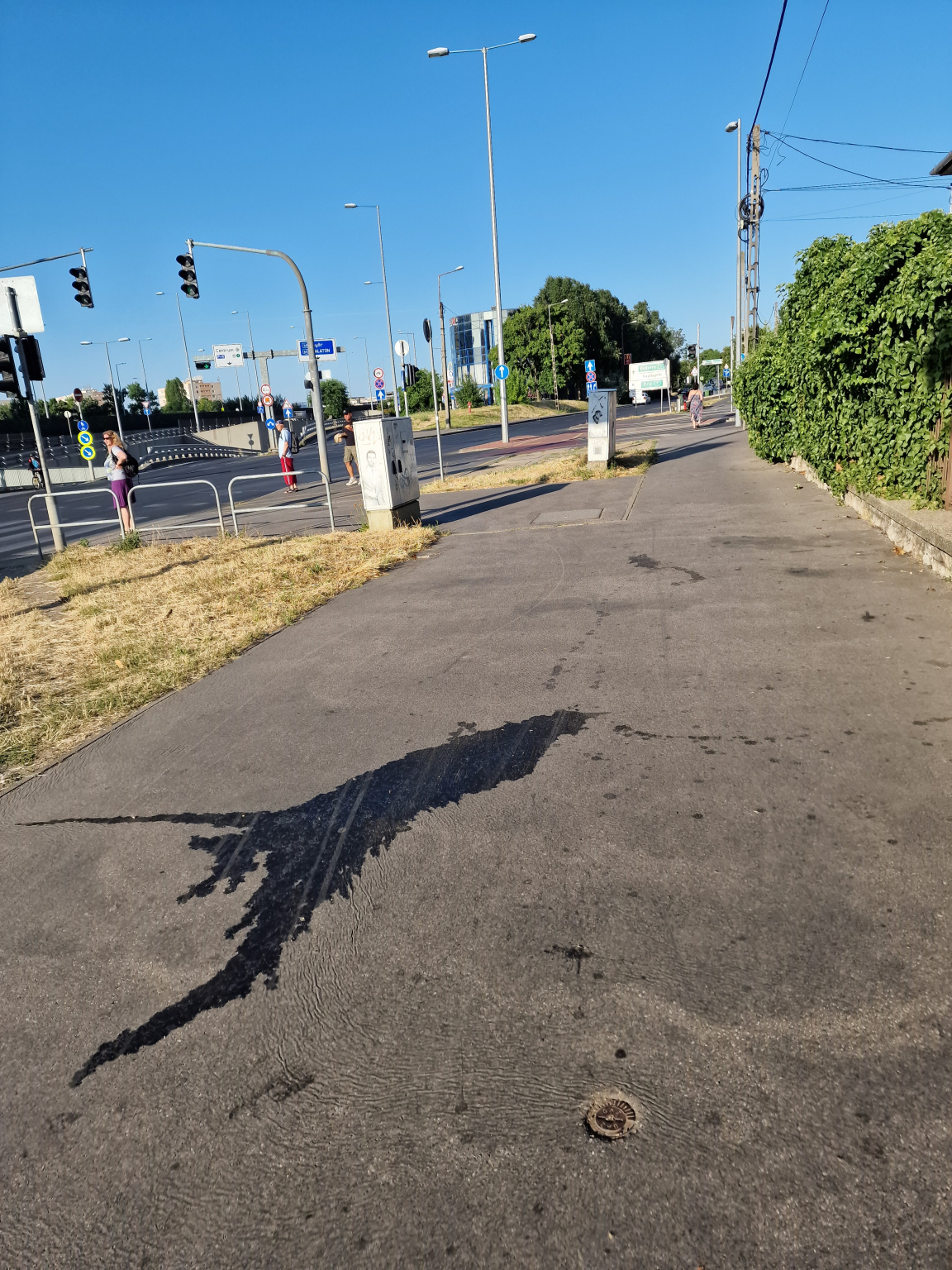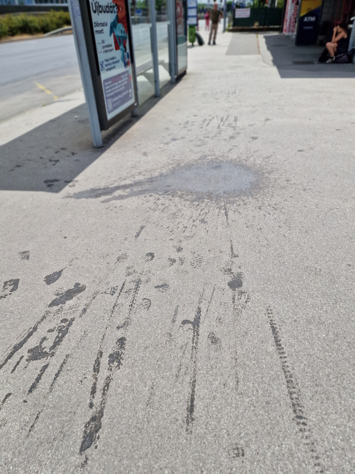 „Azóta született egy újabb óriási ragacsos gusztustalan tócsa a Budaörsi út 115. előtt a BKK buszmegálló mögött.”