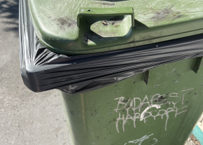 Az Erdőkerülő úton, a busz végállomáson a kuka undorítóan koszos! Többször meggondolom hogy hozzányúljak vagy inkább keressek egy másik kukát. Bkk vagy bkk ( vagy nem tudom épp most mi a neve) épülete előtt van.
