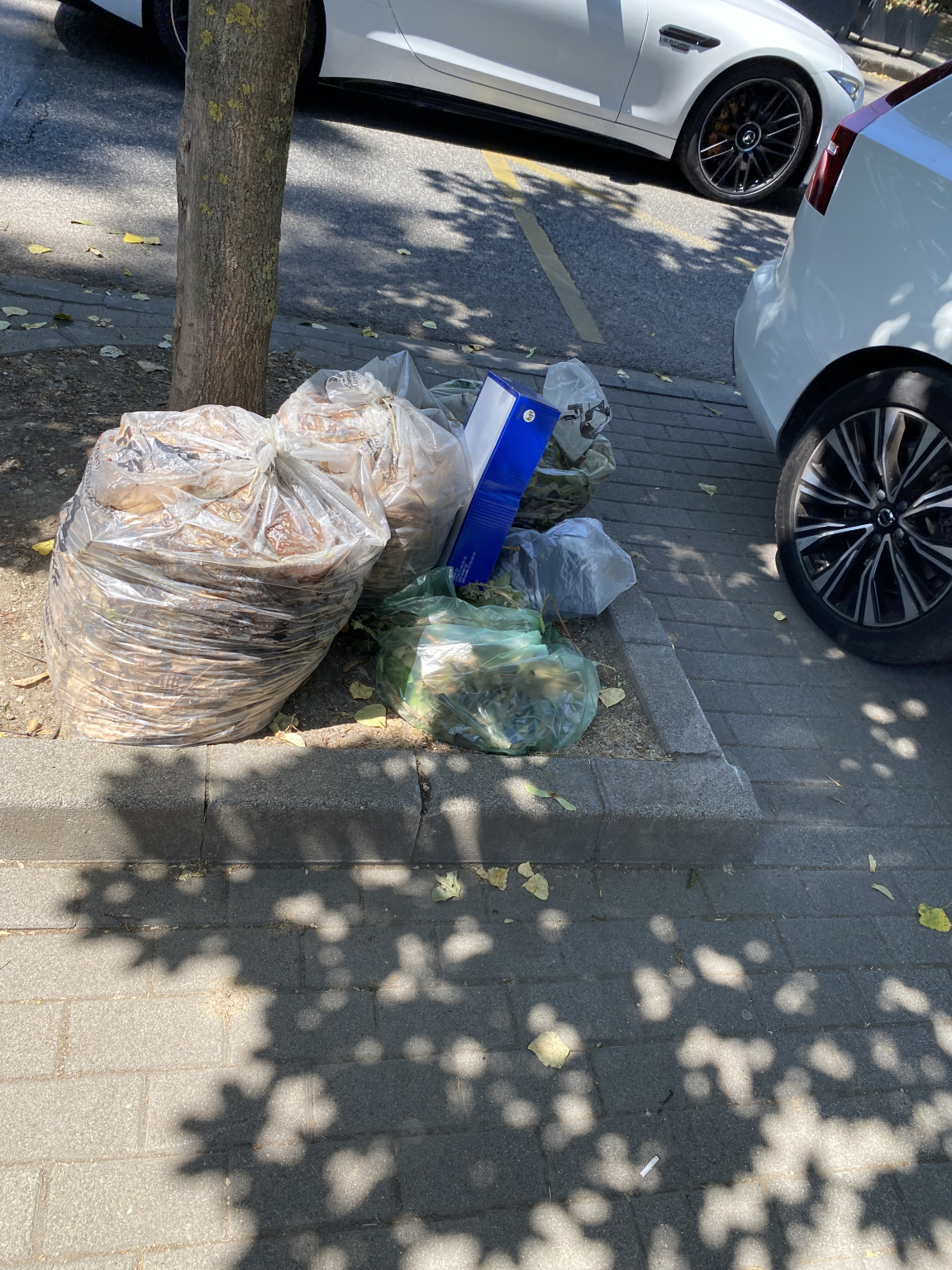 „A MOHO munkatársai nem szállították el a zöldhulladékot. Egyedül azt a zsákot vitték el, amelyikből az útra folyt szemét. Továbbra is tele van zsákokkal és zöldhulladékkal a jelzett szakasz. Érthetetlen az illetékes válasza.”