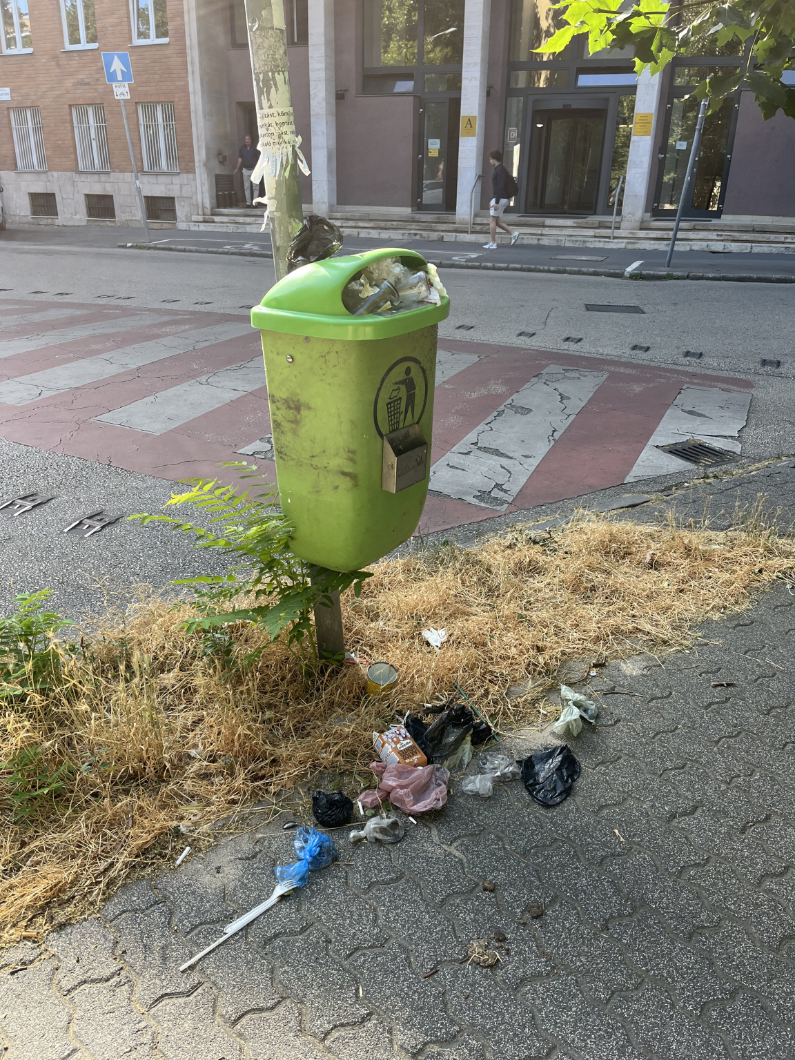 Széchenyi Gimnázium előtt valami miatt nem ürítik ezt a szemetest, és az utcán is áll a szemét