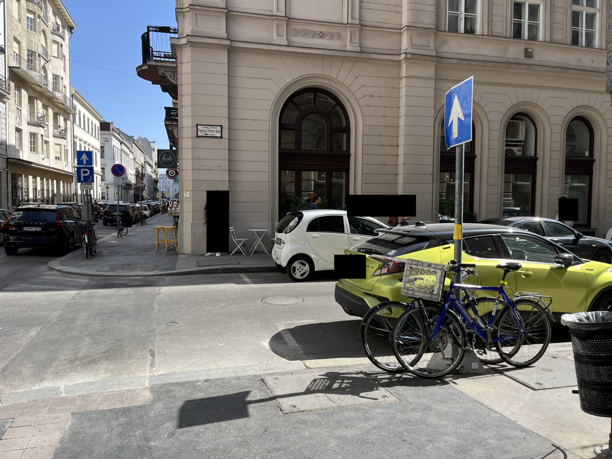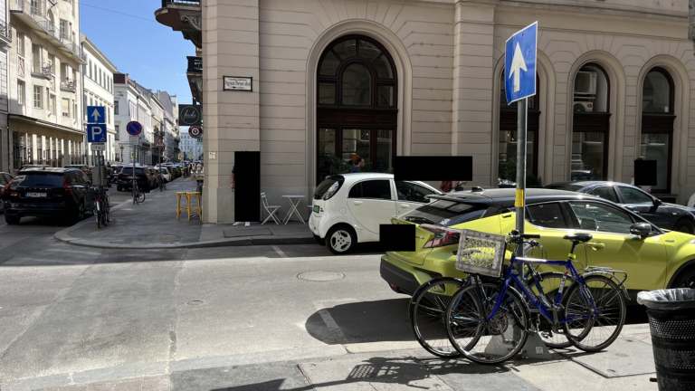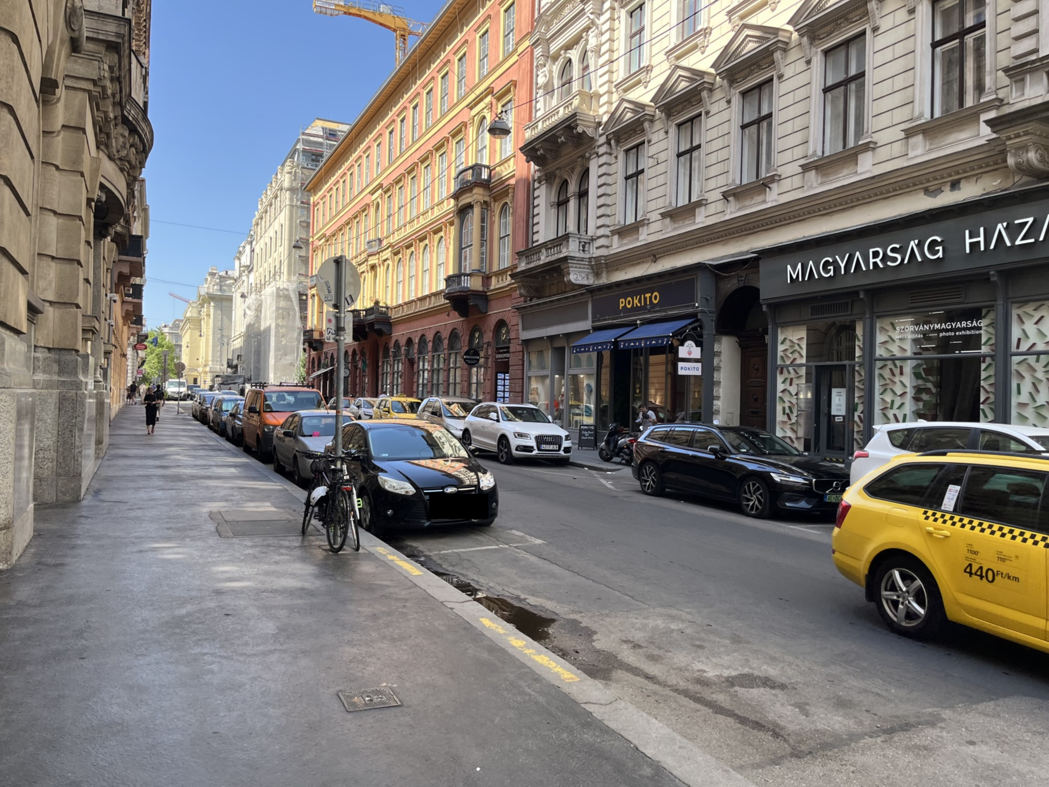 Az V. Nádor utca – Vigyázó Ferenc utca kereszteződésében és a közvetlen környezetében a járda szélessége nem alkalmas a kerékpár tárolók kialakítására.