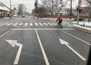 Megyeri u. befelé vezető sávjaiban: egy balra kanyarodó és két befelé tartó sáv elkülönítő felfestése láthatatlanná vált. A sáveltolás miatt a zebránál a járdán várakozni nem kellemes. A kereszteződésben óvoda , iskola, buszmegállók találhatóak. Évekkel ezelőtt sikeresen jeleztem személyesen a kerületben, de azóta újra eltűnt a felfestés. Köszönet a segítségért!