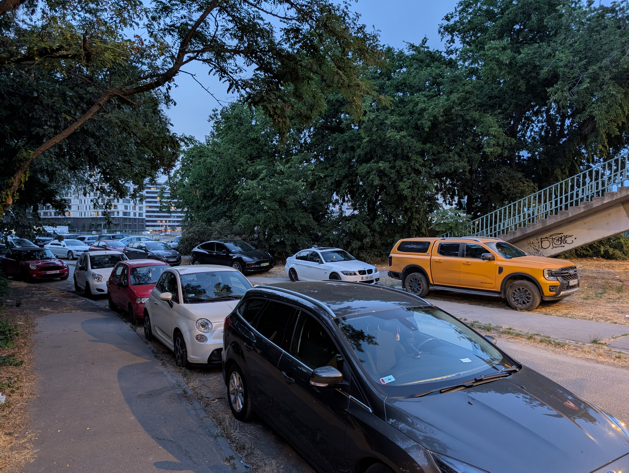 Ma este negyed 8-kor a Máriássy utcától futni indultam, és láttam, hogy - vélhetően a közeli szórakozóhely miatt - szokás szerint rengeteg autó ellepte a környéket, és egymás hegyén hátán állnak - nagy eséllyel tilosban. Onnan a MÜPA felé futottam, ahol a közterület-felügyelők épp a híd alatt parkoló autókat bírságoltak. Kihasználtam az alkalmat, és odaléptem az egyikükhöz. Mondtam neki, hogy a Máriássy utca hídra vezető végénél már több tucat autó áll. Azt mondta, hogy nem biztos, hogy az az ő hatáskörük - mint ahogy a Fradi meccsek idején szabálytalanul parkolók ellen se ők az illetékesek, hanem a fővárosi közteresek, ha jól értettem -, de azért megnézik. Majdnem két órával később érkeztem vissza a Máriássy utcába, és azt láttam, hogy még több autó parkolt egymás hegyén hátán. Büntetést és/vagy bilincset egyiken sem láttam. Egyébként annyira látványos (vagyis inkább bicskanyitogató) ez a jelenség, hogy rajtam kívül még ketten fényképezgették felháborodva a környéket ellepő autókat. A ferencvárosi közteres úrnak tett szóbeli bejelentésemnek ugye nincs nyoma, de remélem, hogy ez az írásos bejelentés eléri célját a megfelelő hatóságnál.