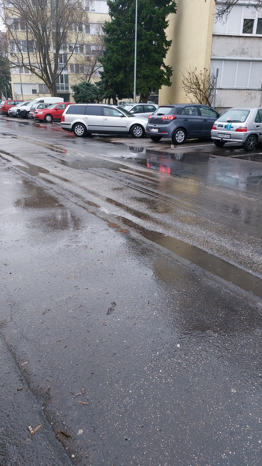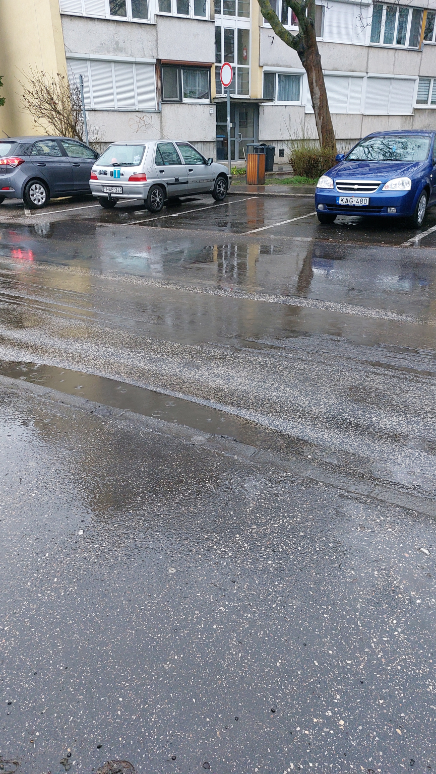 Az Eperjes utcai buszmegálló előtt több, hatalmas, mély kátyú alakult ki. Esős időben az autók méterekre csapják fel a buszmegállóban álló emberekre a vizet.
