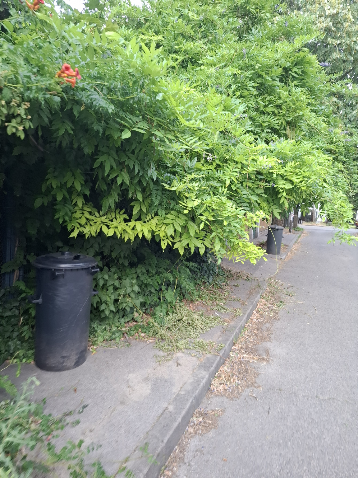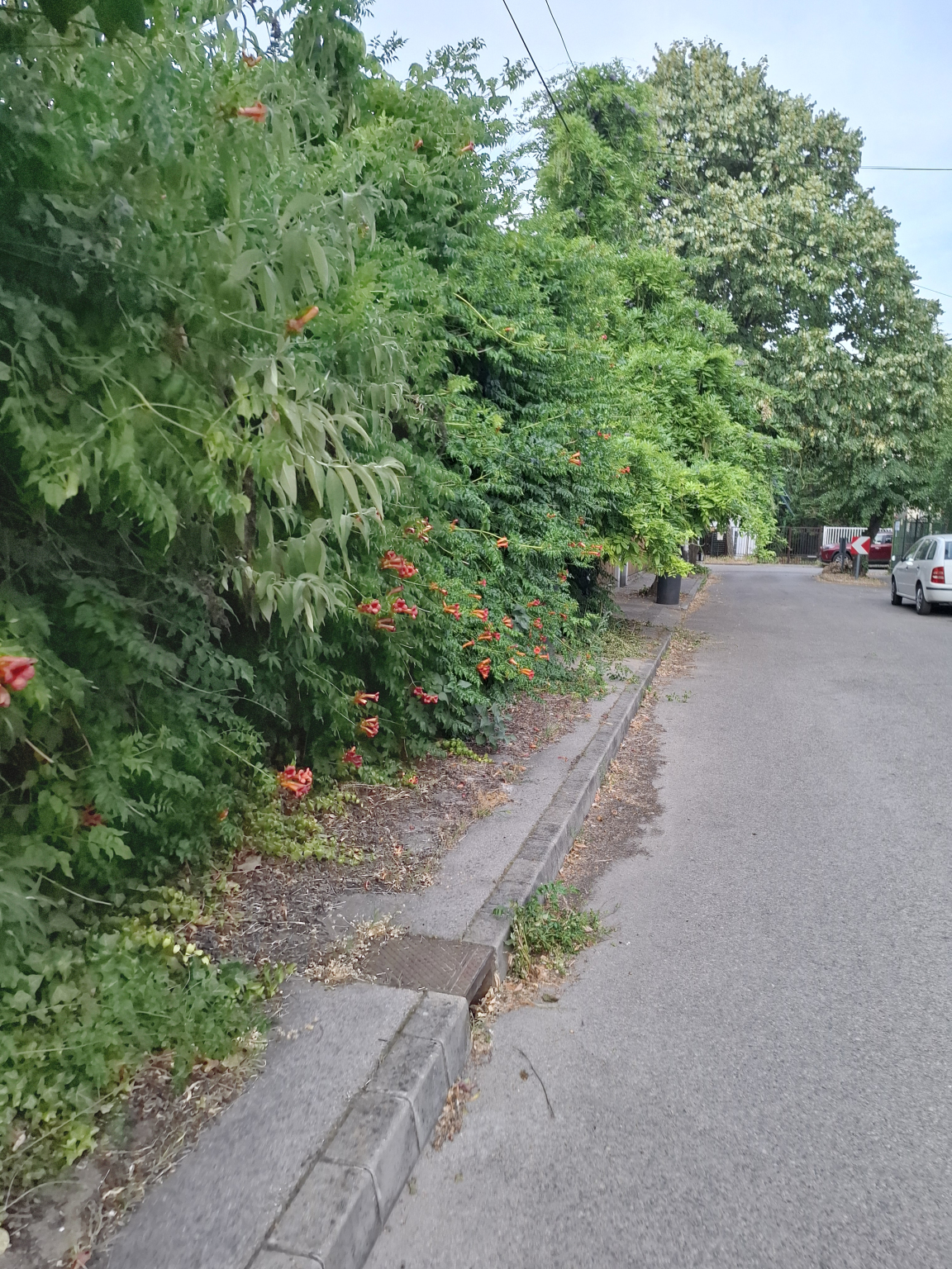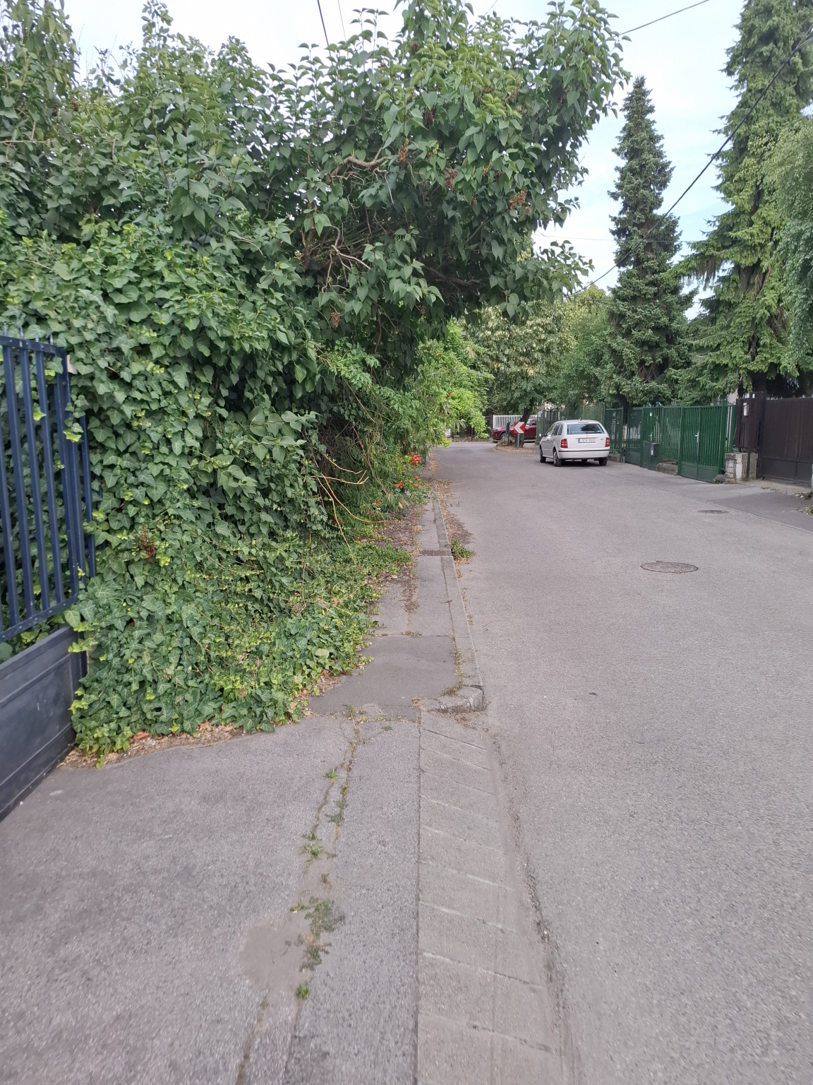 Az ingatlan előtt hatalmas gaz van, a járdán nem.lehet végigmenni. A növények a gépjárművek közlekedését is nehezítik!