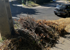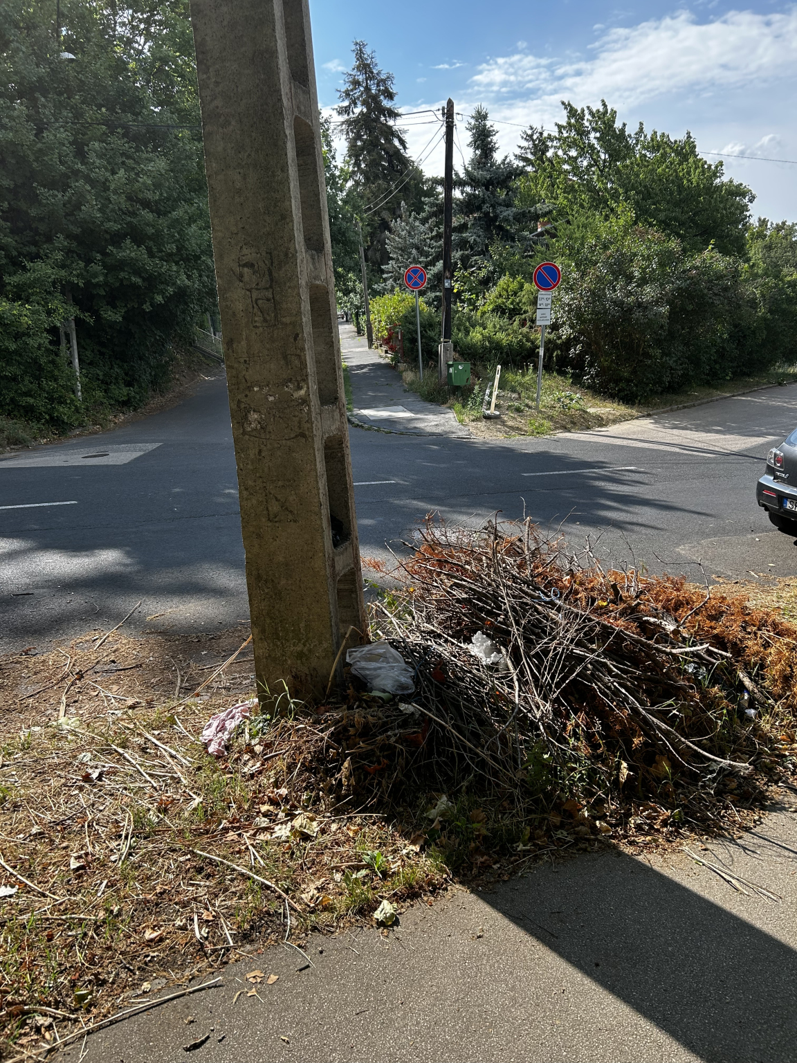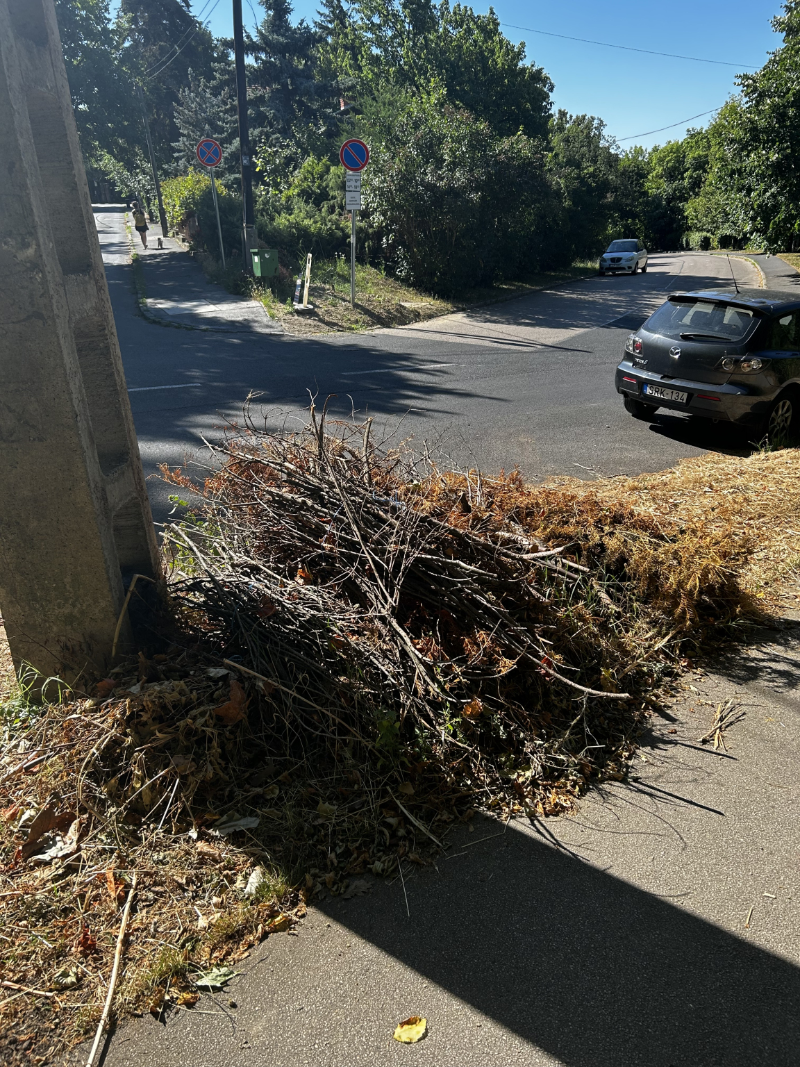 „A kötegelt zöldhulladék pont ott van ahol 3 hónapja! Kérem a MOHU illetékest vigye most már el de azt is, aminek esetleg időközben szétesett a kötözése a halom alján.”