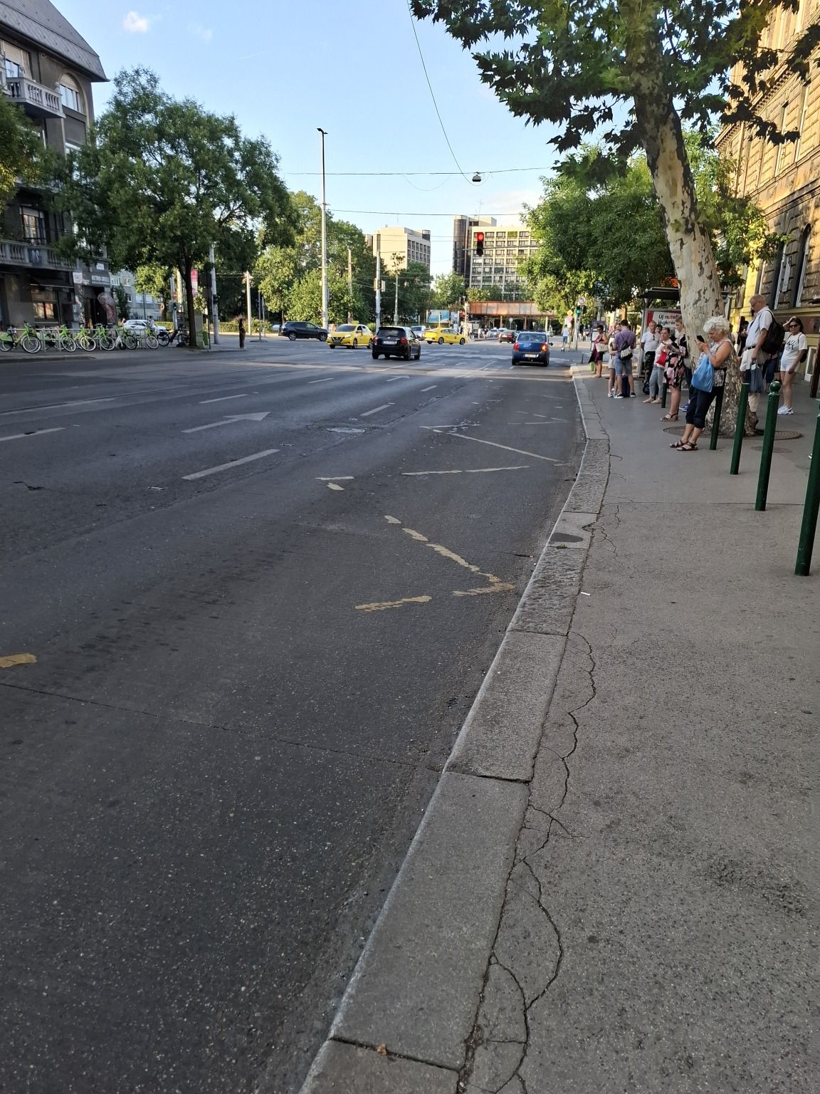 Zugló vasútállomás buszmegállóban a sárga útburkolati jel lekopott.