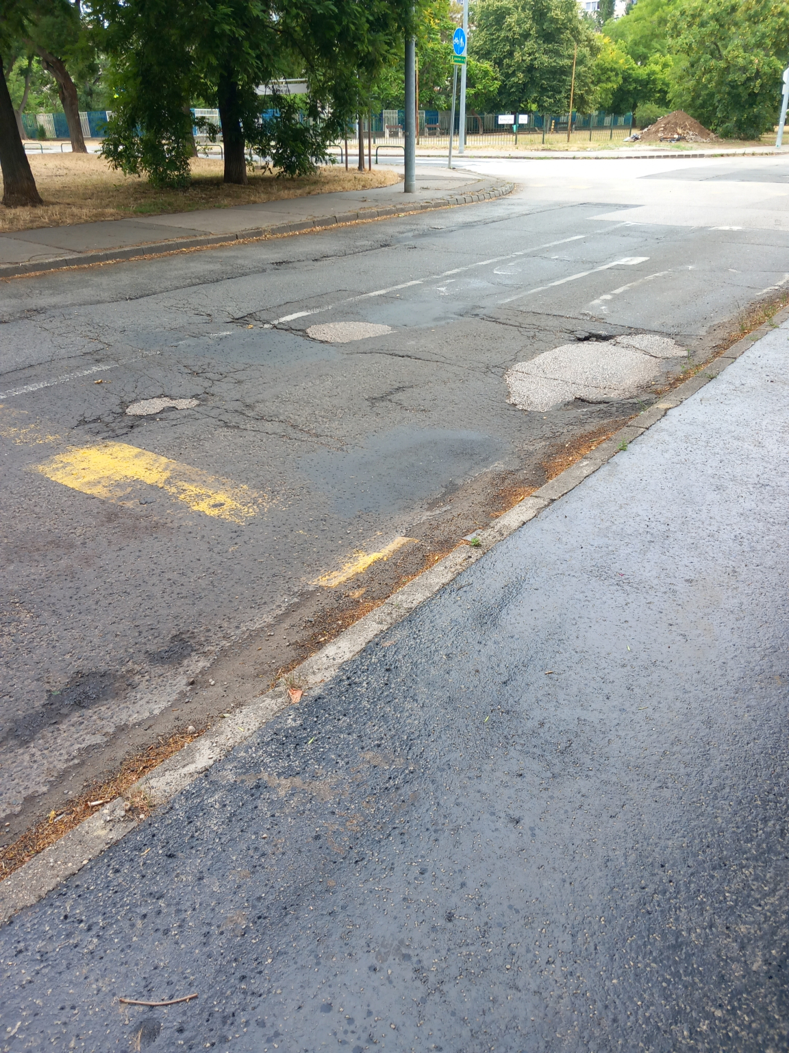 Értesítem hogy a Tavas utcai és Harmat utcai csomópont felé a 85 ös, 85E és 117 és autóbuszvonalán a 68 as, 268 as és 185 ös busz vonalának találkozásán, közúti stop és bicikli közúti tábla nem jó irányba van, illetve közben az útburkolaton párhelyeken sár tenger kátyúk vannak az útburkolaton ami kilengéseken az alacsonypadlós új buszokon rezgés és kilengéseken kárt okozhatnak valamint a sárga csíkokra és stop jelzések lekopások láthatóak ezen az útburkolaton ami bármikor balesetveszélyes lehet