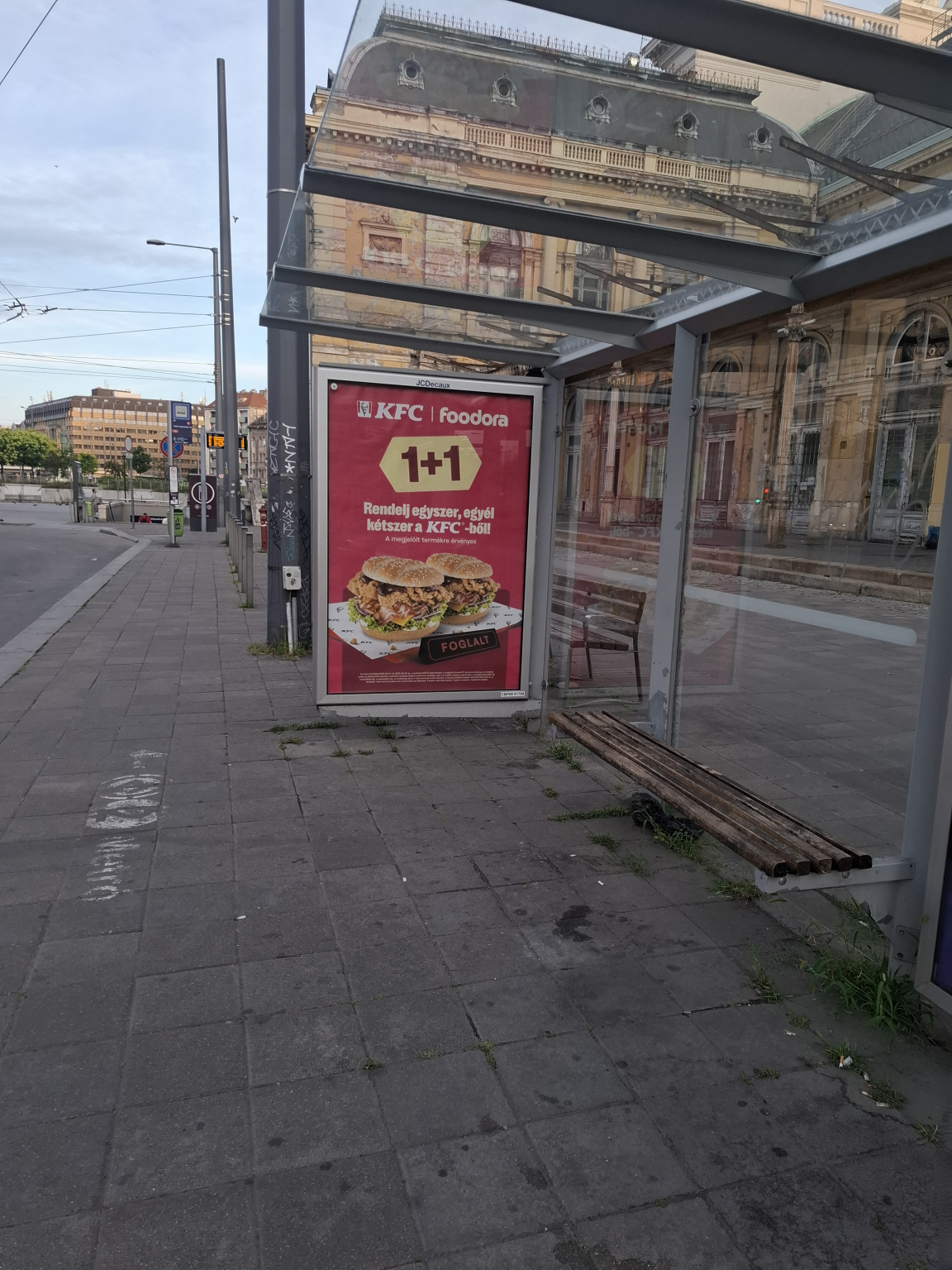 A Keleti pu. buszmegállók egyikében a pad festése erősen megkopott. Nagy forgalmú buszmegálló, kérem fessék újra!