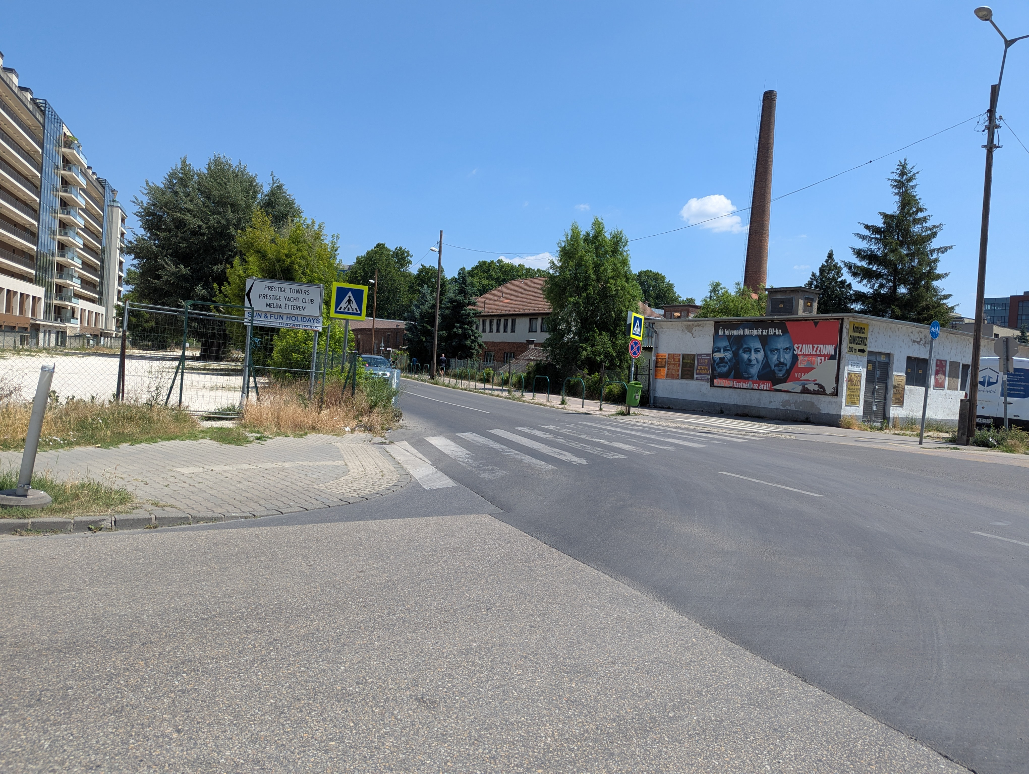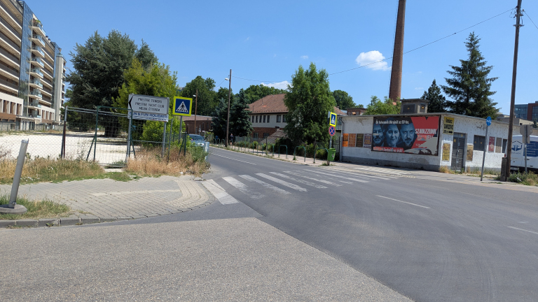 Szeretném kérni, hogy a kereszteződés közepét felfestésekkel tolják egy pár méterrel arrébb a Mura utca felé (ez megoldaná a jobbra való belátást is). Vagy legyen lámpa (ez is). Esetleg a növényzetet nyírják kisebbre (bár kerítés és tábla is belóg, nem biztos, hogy elég lenne).