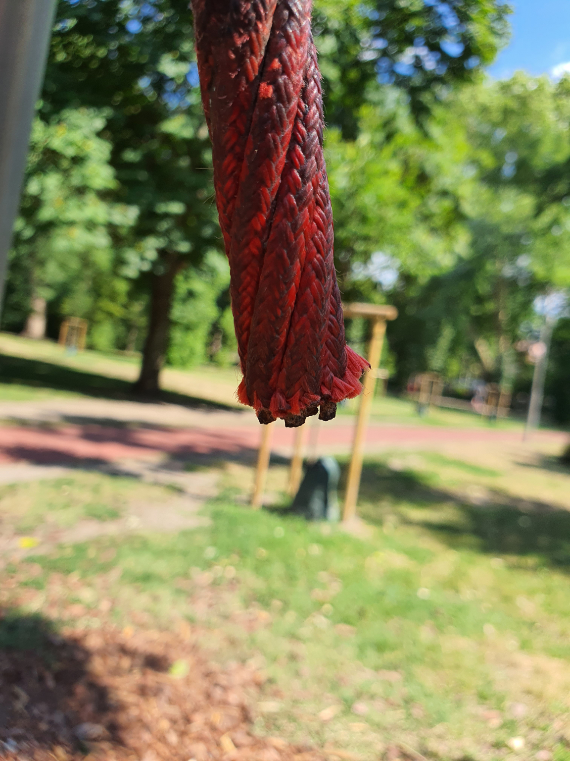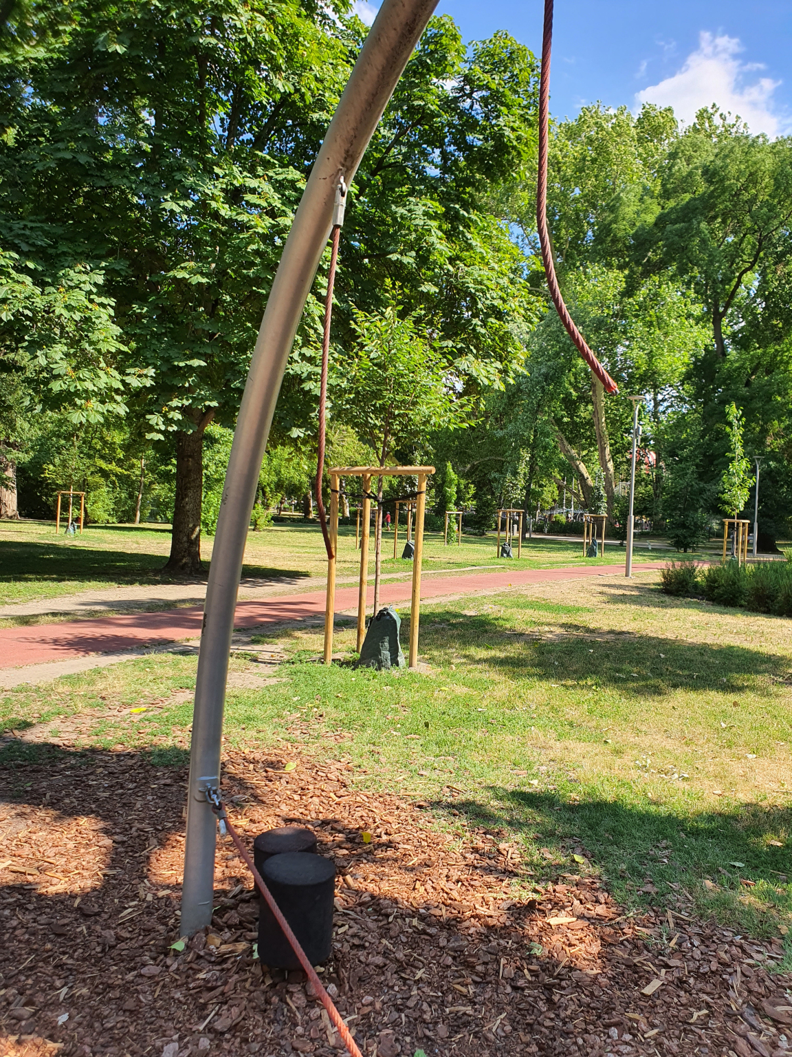 Játszótéri elemről 2 védőgumi hiányzik. Balesetveszélyes a fém.