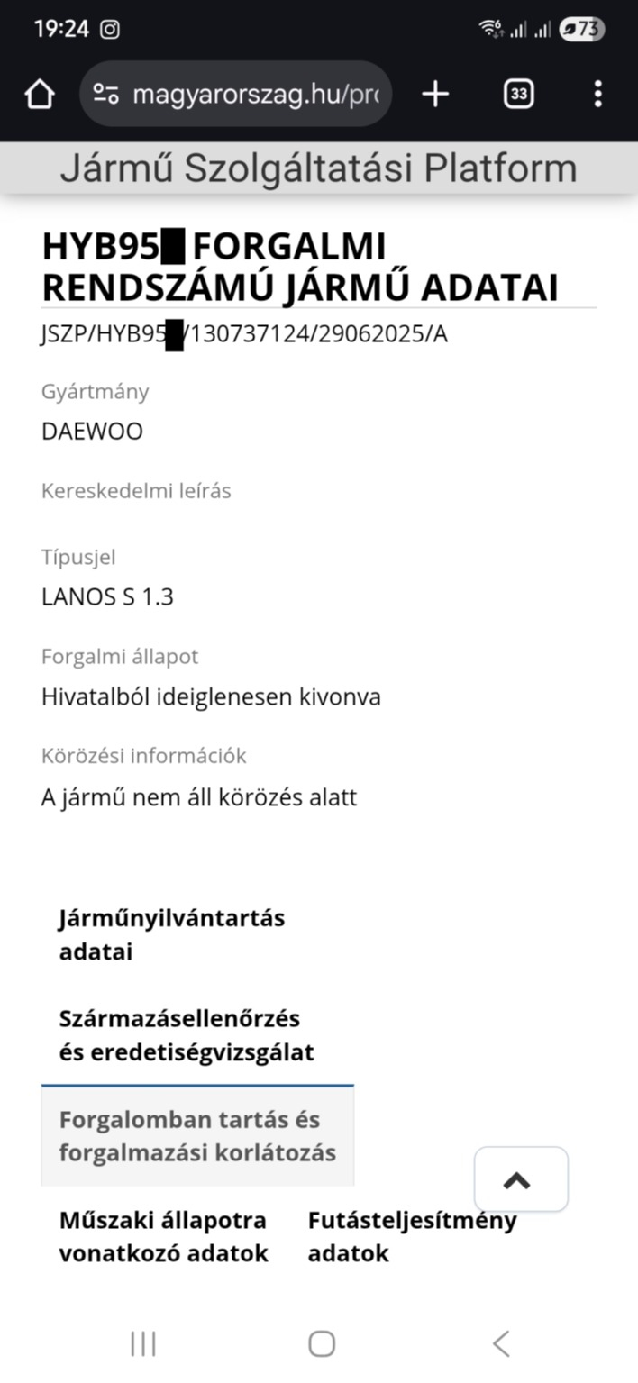 HYB95... gepjarmu elszallitasa forgalombol kivonva