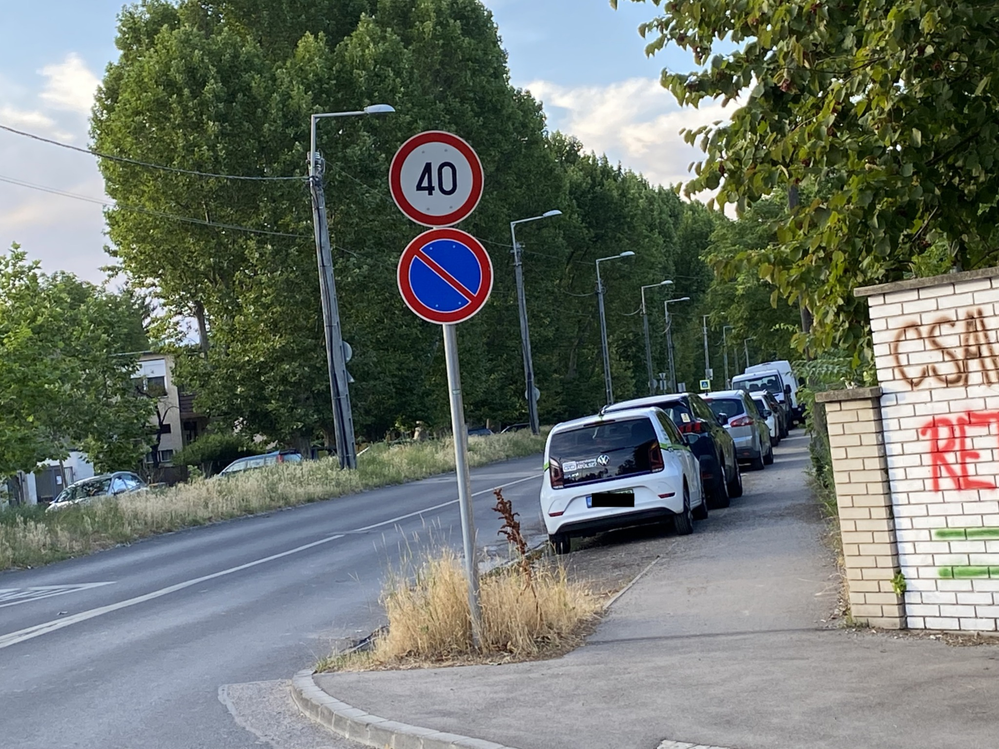 A Nánási úton rengeteg autó parkol különösen a nyári időszakban, mivel a Római part kedvelt kirándulóhely. Az úttest melletti széles, elhanyagolt sáv erre kiválóan alkalmas is. Ennek ellenér végig várakozni tilos tábla akadályozza a normális parkolást, ami csak arra jó, hogy büntetni lehessen a napi több száz ott parkoló autóst.