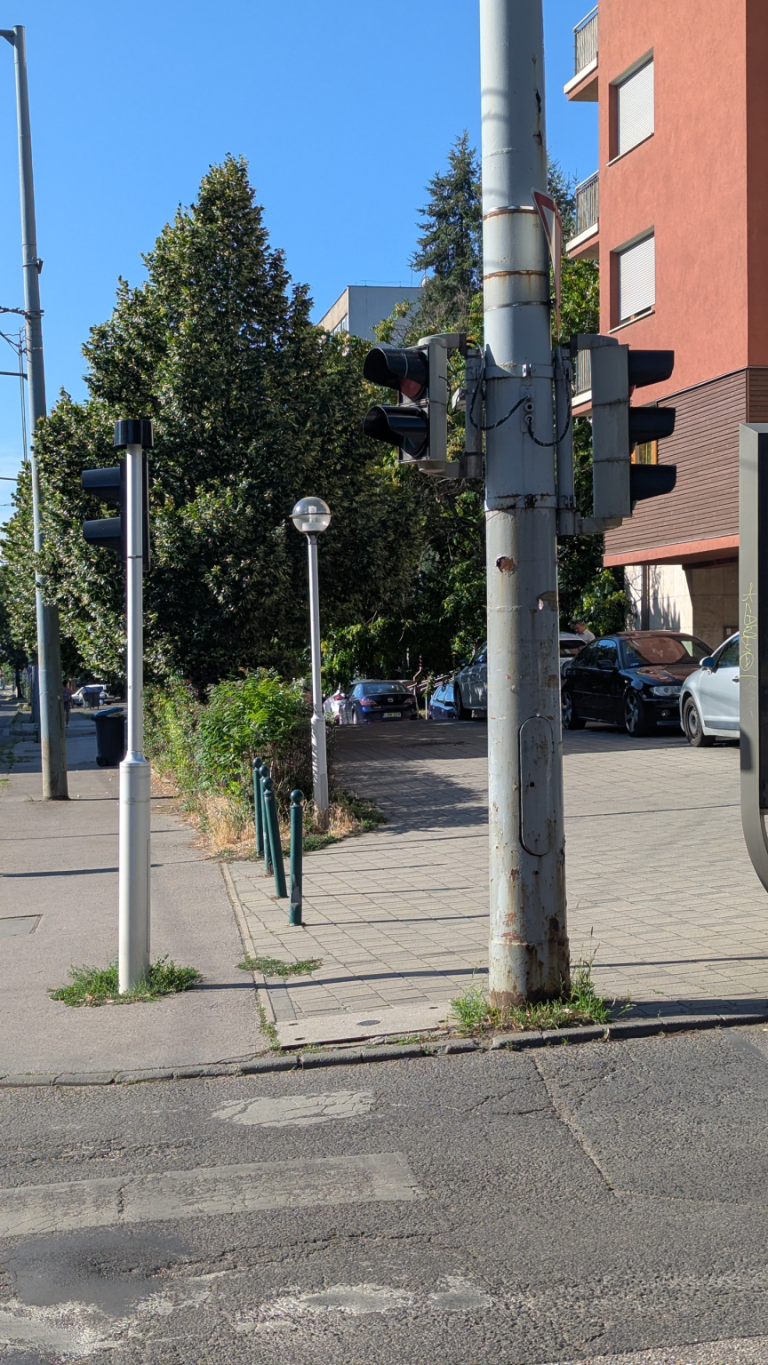 A Kiscelli utca alján a gyalogos jelzőt rendszeresen lefordítják a kanyarodó teherautók.