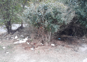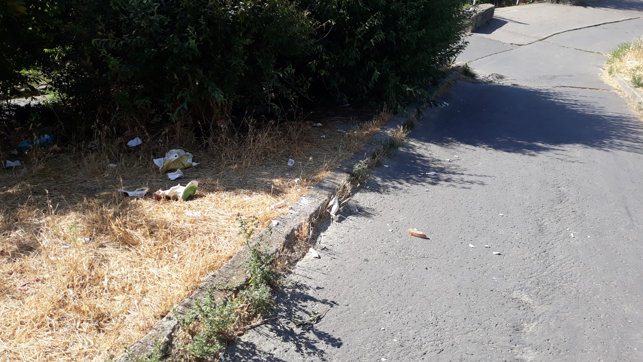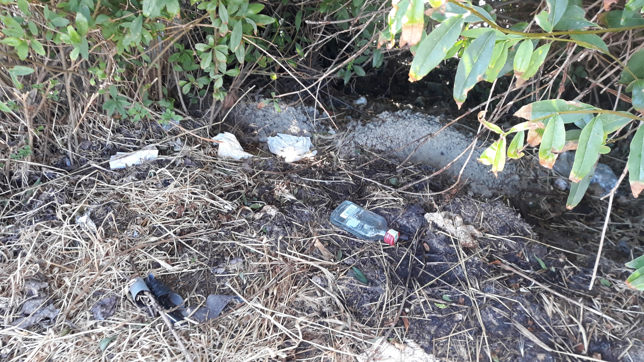 A kedvenc szerpentinemen megint megjelentek az üvegszilánkok, valamint újításként egy porcelán szobor darabjai is hevernek szerteszét. A WC bokor szokás szerint tele fekáliával és a tartozékaival, sörös dobozok és egyebek szanaszét.