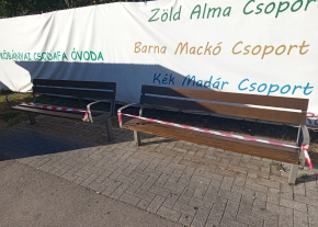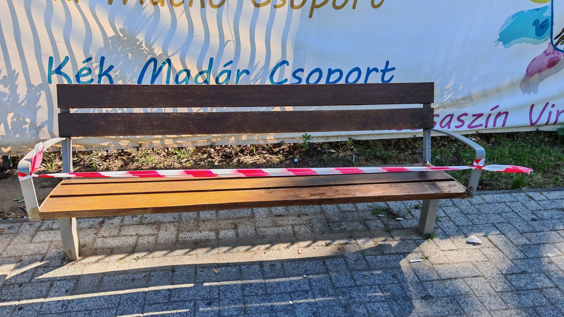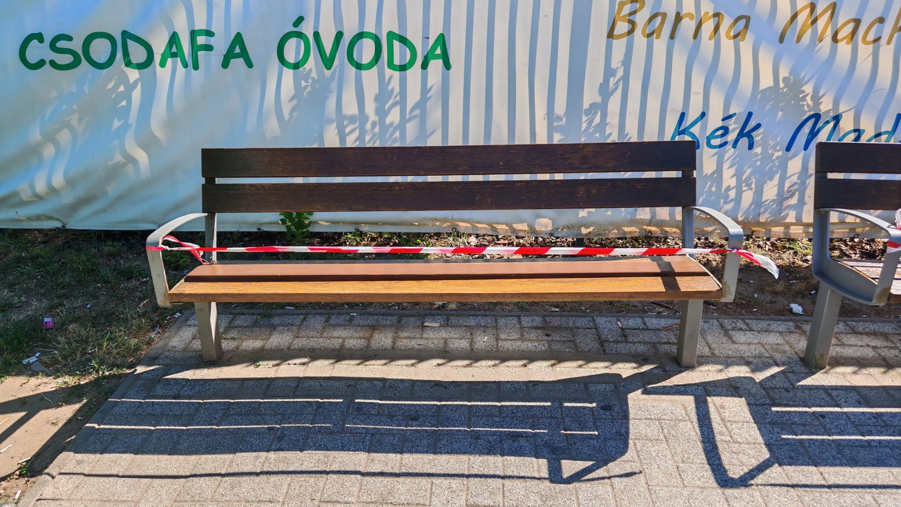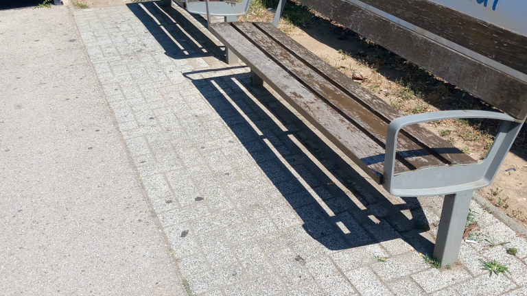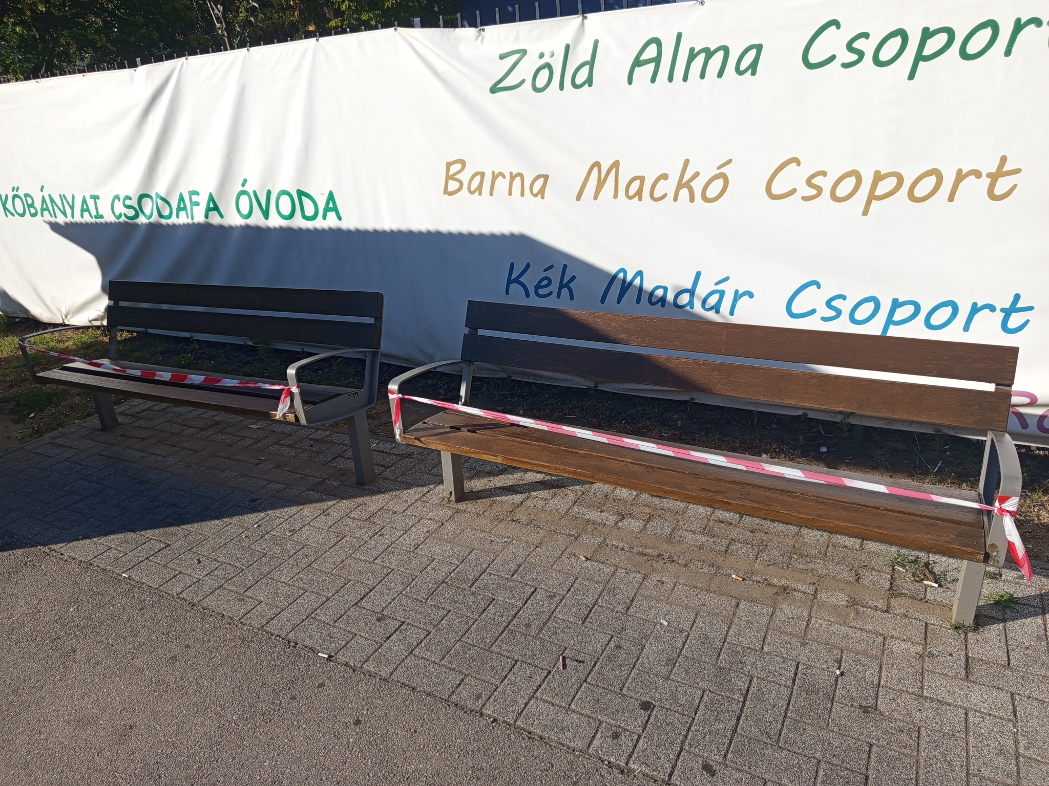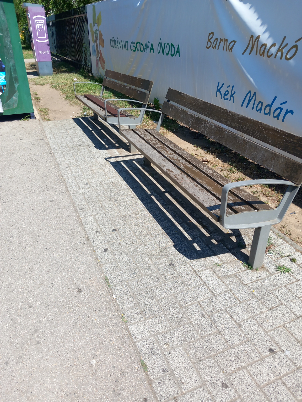 Az Újhegyi sétány buszmegállónál utasváró mellett a mind kettő pad lekopott