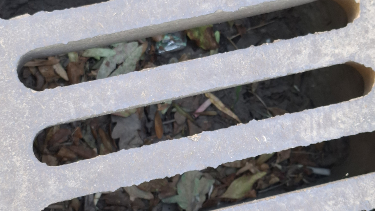 Az Adria Sétány 5 H előtt a vízelvezetőben sok a szemét.