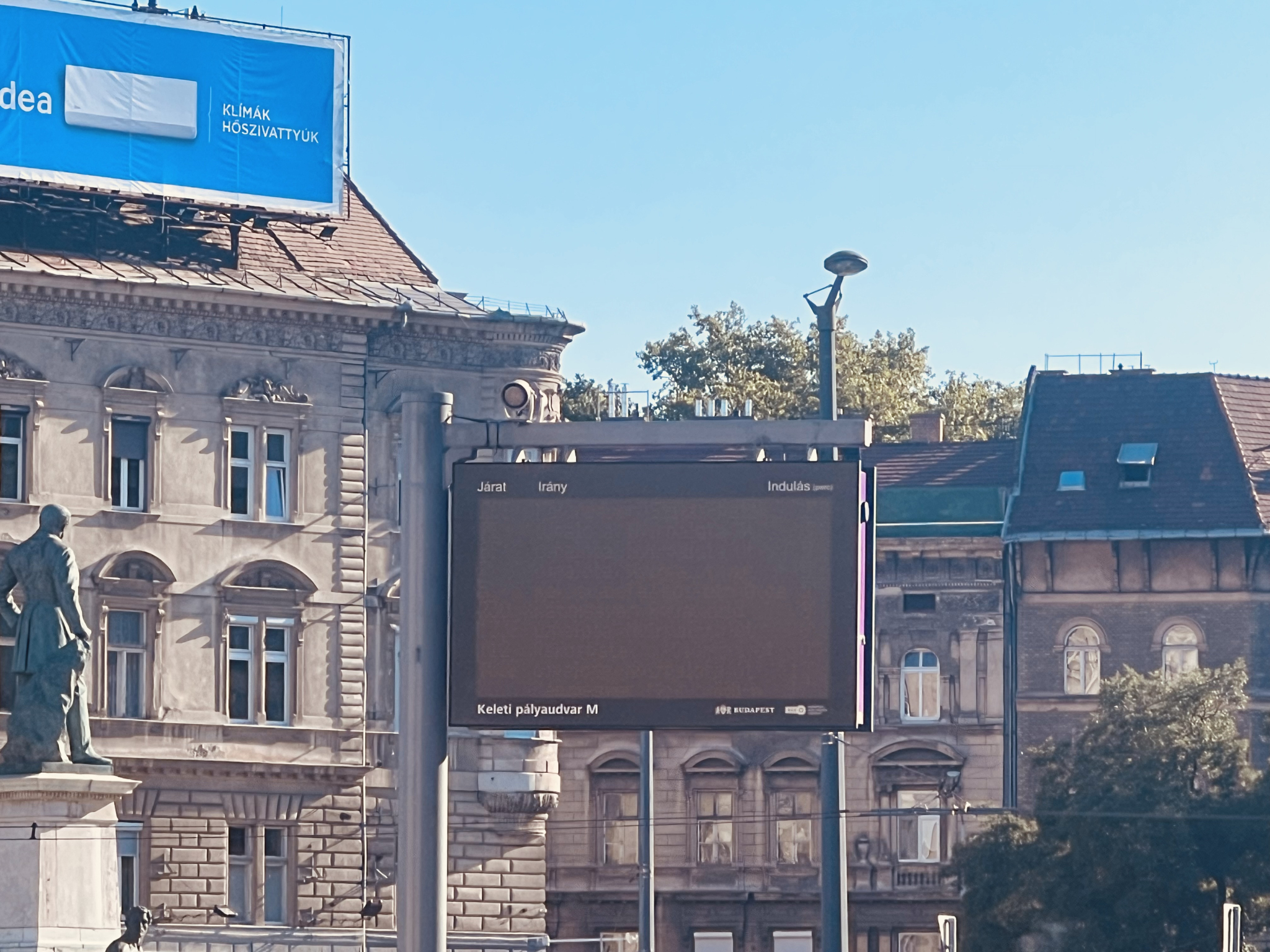 Keletinél a menetrendi kijelző egyik oldala nagyon halvány kb olvashatatlan a másik oldal nem működik.