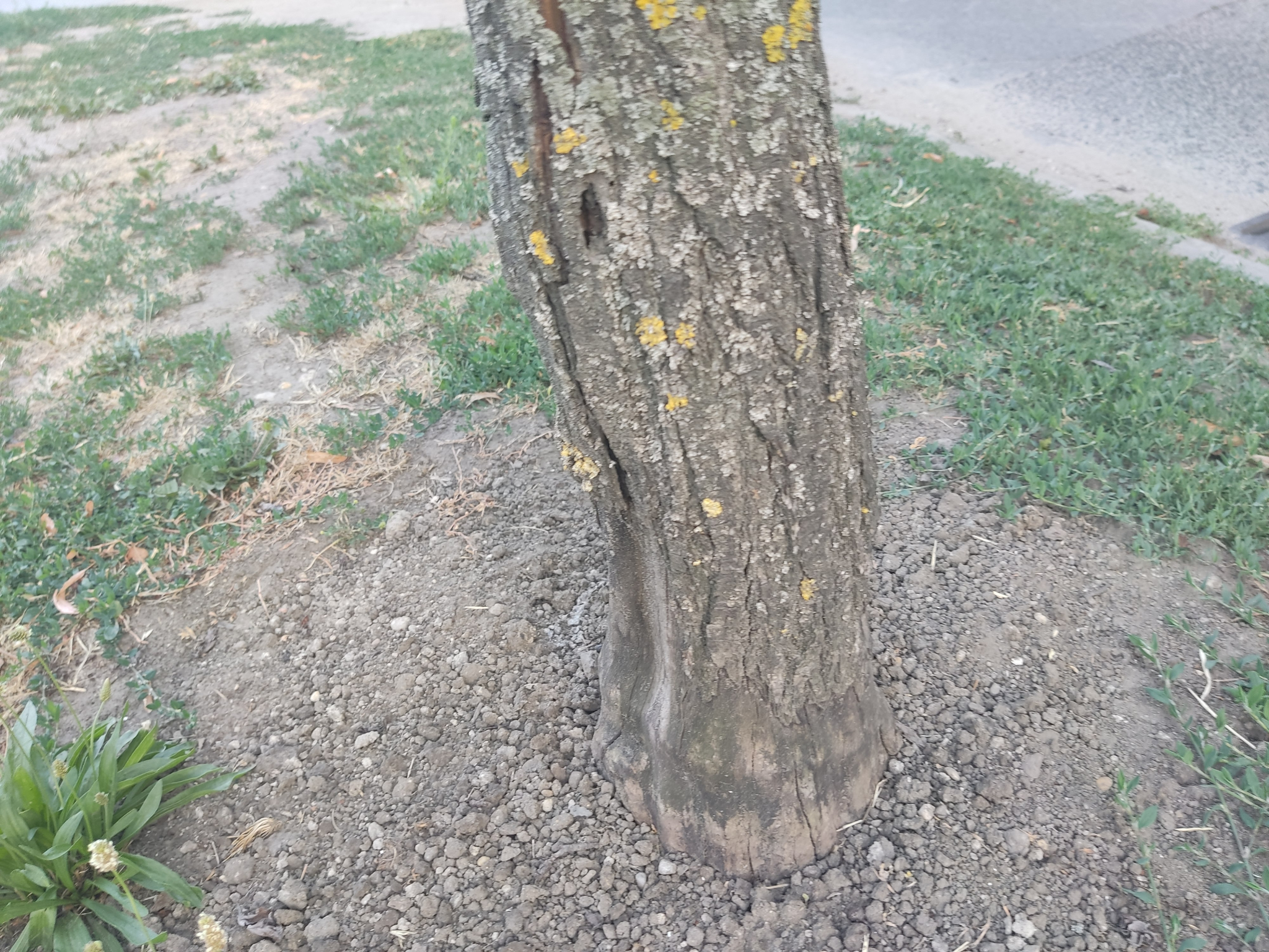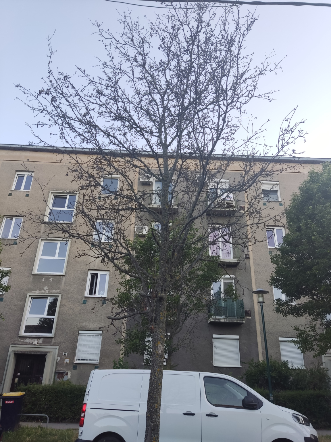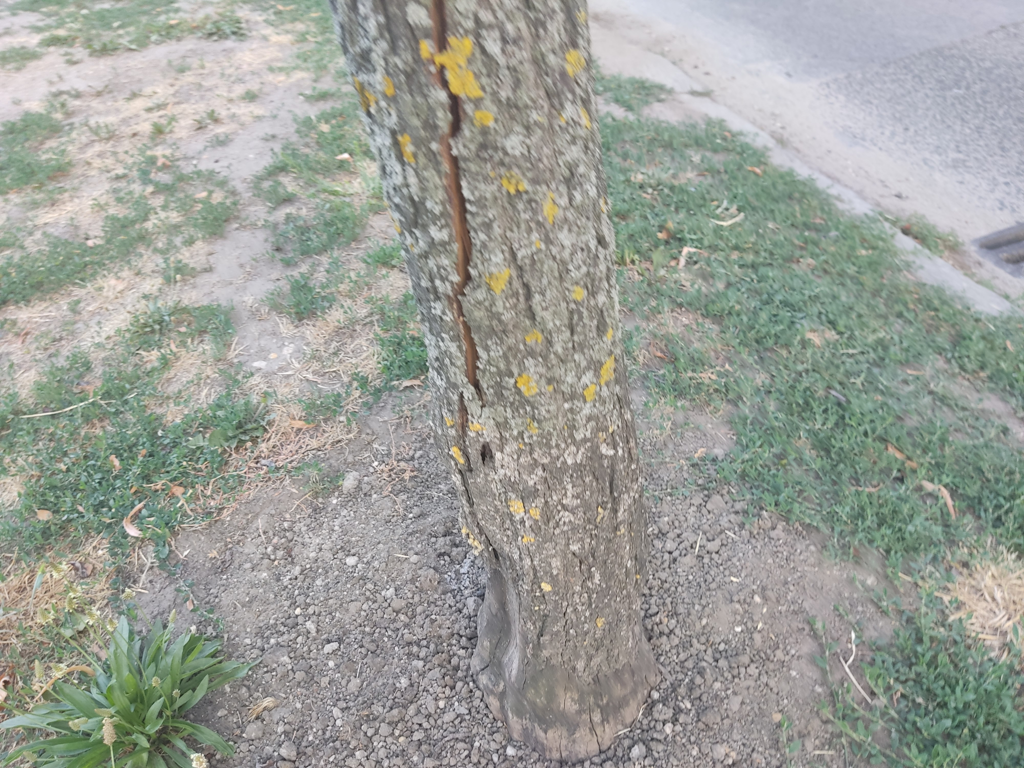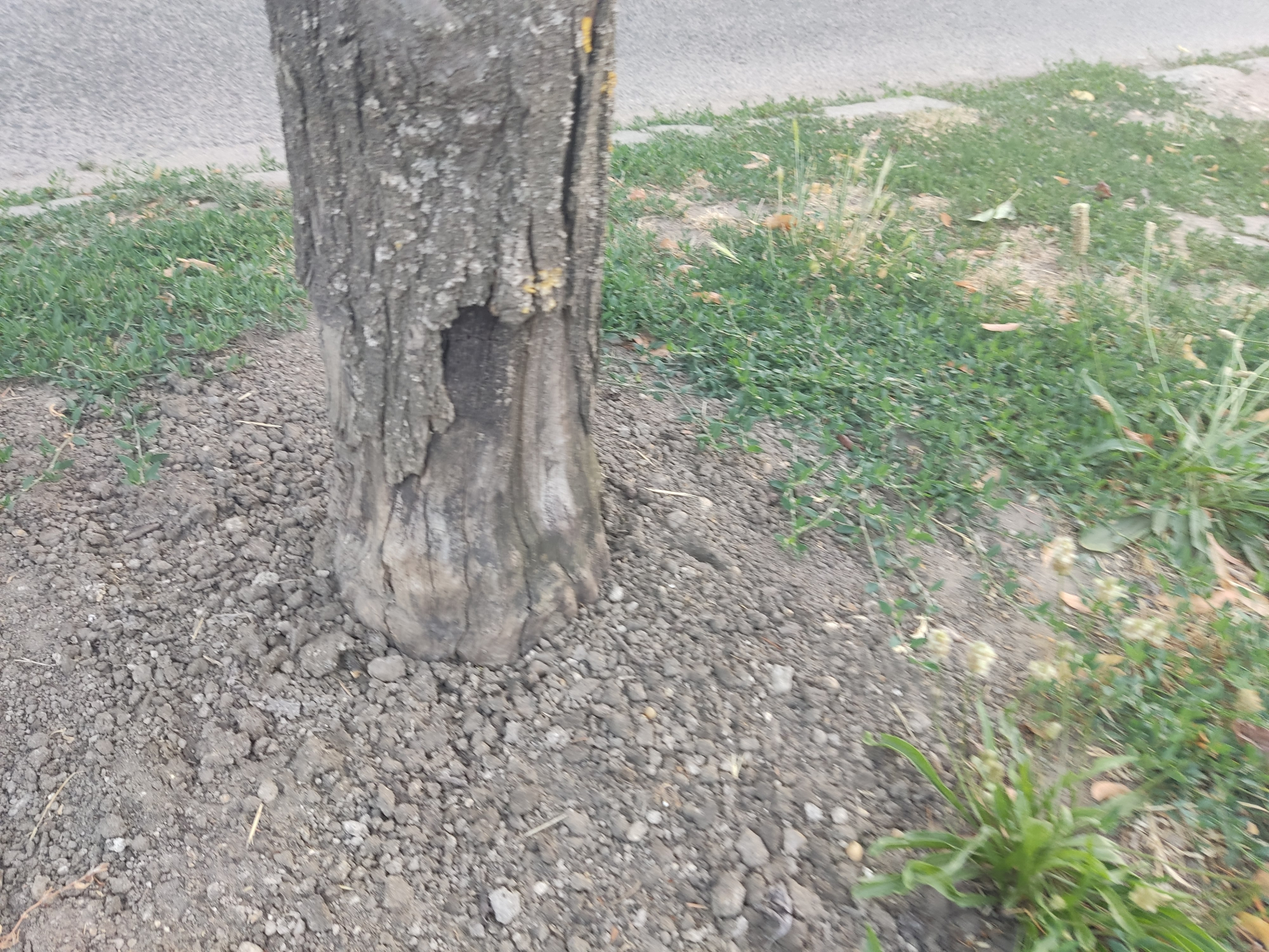 Kiszáradt balesetveszélyes repedt törzsű fa.