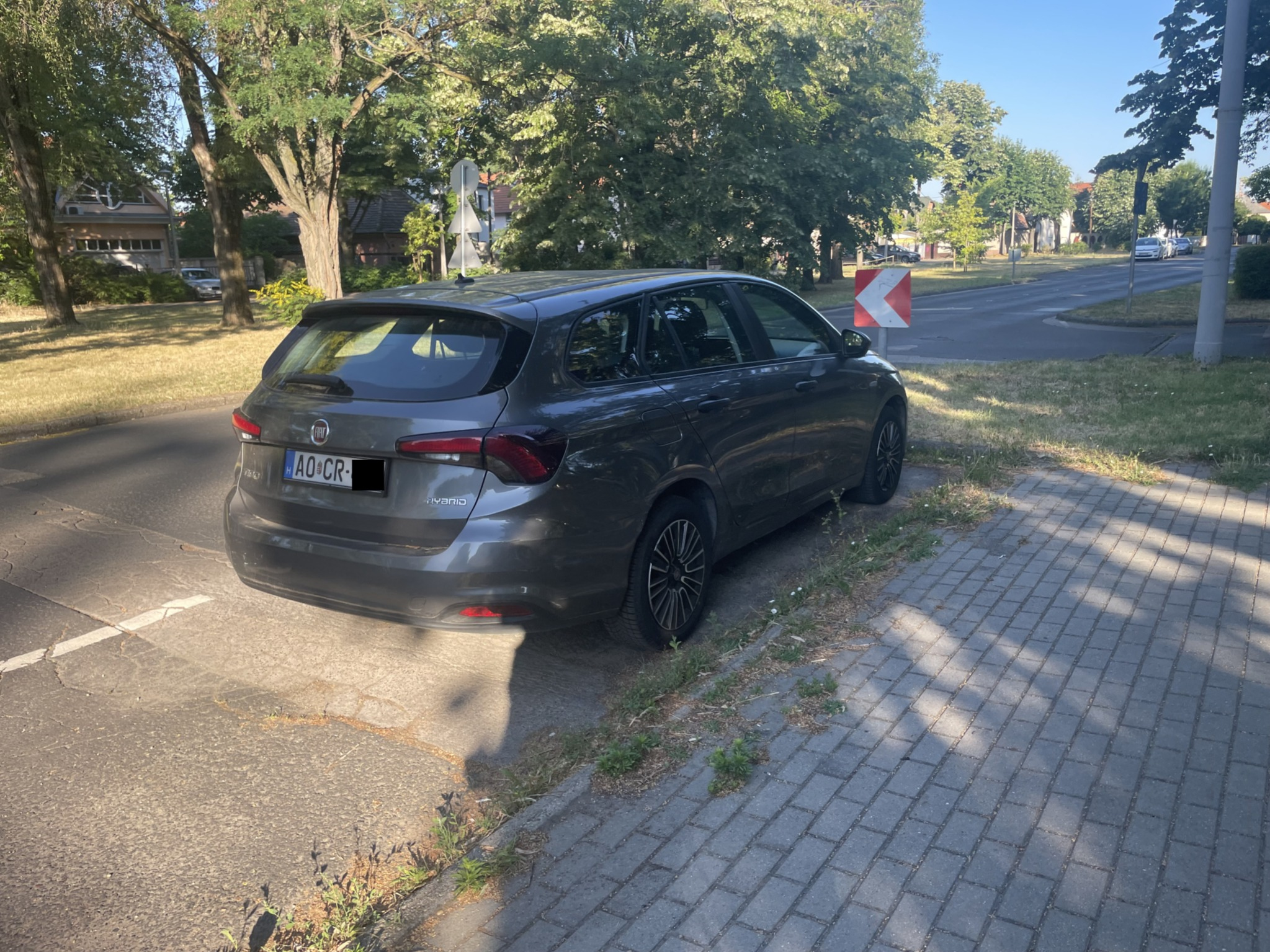 Elhagyott Fiat, lóg róla a lemez és le van engedve a kereke, hetek óta ott áll.