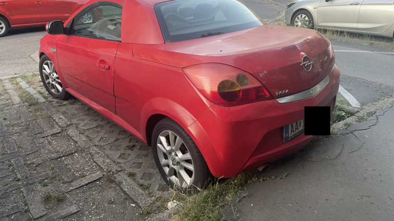 Hónapok óta ott parkol a fű is körbe nőtte, foglalja az értékes helyet. a kereke le van eresztve, folyik belőle valami olaj is.