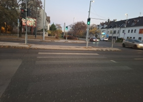 Az Andor utca és a Tétényi úton lévő kereszteződésben a gyalogátkelők szemetesek, porosak, gazosak.