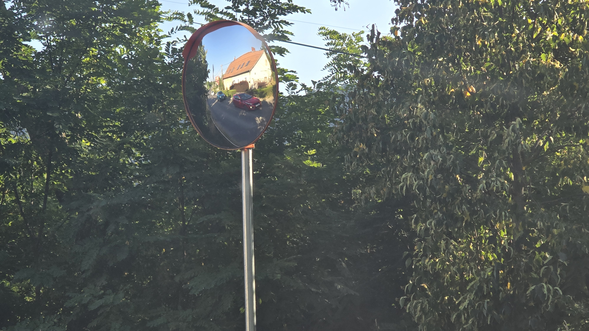 Örömmel tapasztaltam, hogy 2021. aug. 2-i, megoldhatatlannak minősített bejegyzésem ellenére lámpa és gyalogátkelő ugyan nem, de sebességkorlátozás és tükör került a Szőlővész utcai kereszteződésbe közel 4 év elteltével. Elsősorban a tükör autósként nagy segítség, ám a mellette lévő fa ágai újra és újra belelógnak, szélben behajolnak, és zavarják a kanyarból érkező autók időben történő észrevehetőségét. Szükséges lenne a fát szakszerűen megformázni.