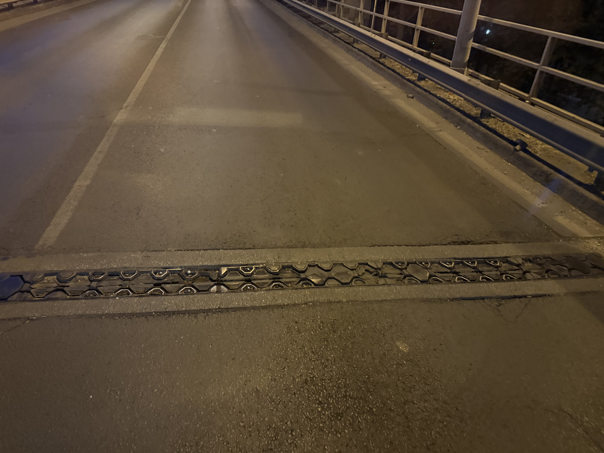 Híddiletáció hiányos, besüllyedt előtte/utána kátyús az út, teljes útszélességben.
